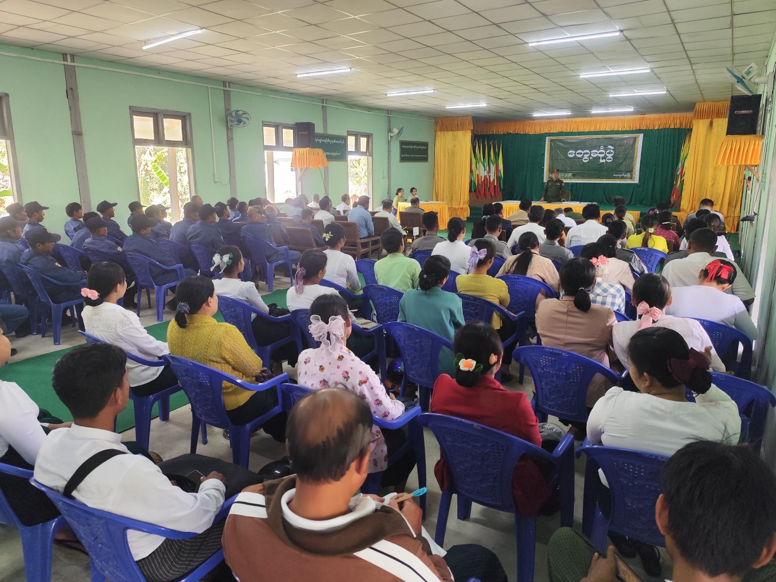 ဧရာဝတီတိုင်းဒေသကြီး ဟင်္သာတခရိုင် လေးမျက်နှာမြို့ အထွေထွေအုပ်အုပ်ချုပ်ရေးဦးစီးဌာန ရုံးအစည်းအဝေးခန်းမတွင် ယမန်နေ့ နေ့လယ်ပိုင်းက ဧရာဝတီတိုင်းဒေသကြီးအစိုးရအဖွဲ့ လုံခြုံရေးနှင့်နယ်စပ်ရေးရာဝန်ကြီး ဗိုလ်မှူးကြီး ခန့်မွန်ဆွေနှင့် မဲရုံလုံခြုံရေးဆောင်ရွက်မည့် လုံခြုံရေးအဖွဲ့များတွေ့ဆုံခဲ့သည်။