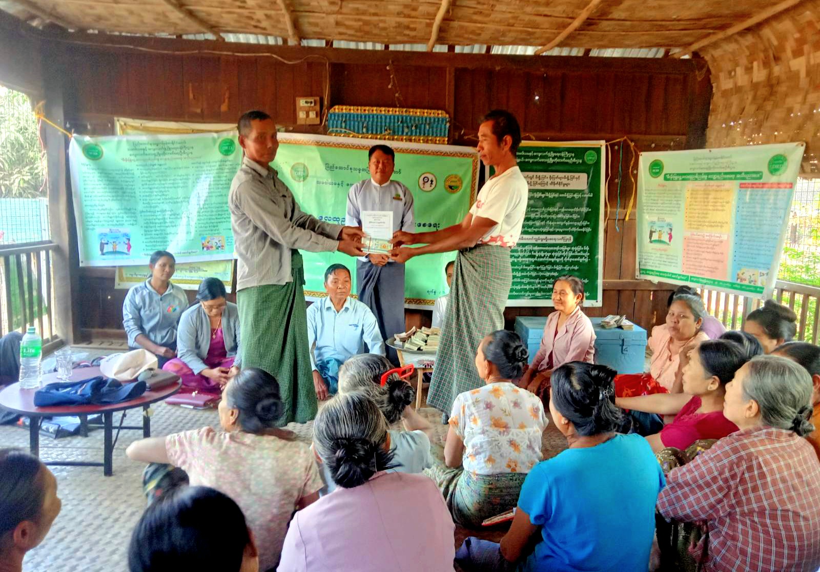 ဆက်လက်၍ စီမံကိန်းတာဝန်ခံဝန်ထမ်းများက ချေးငွေထုတ်ချေးရာတွင် လိုက်နာရမည့်စည်းကမ်းသတ်မှတ်ချက်များ၊ စီမံကိန်းကာလသတ်မှတ်ချက်များနှင့် ချေးငွေအတိုးနှုန်းထားများကို ရှင်းလင်းပြောကြားပြီး မြို့နယ်ဦးစီးမှူး ဦးလှဌေးမောင်က မြစိမ်းရောင်ကျေးရွာစီမံကိန်းလုပ်ငန်း အဖွဲ့ဝင်များထံ ရန်ပုံငွေများကို လွှဲပြောင်းပေးအပ်သည်။