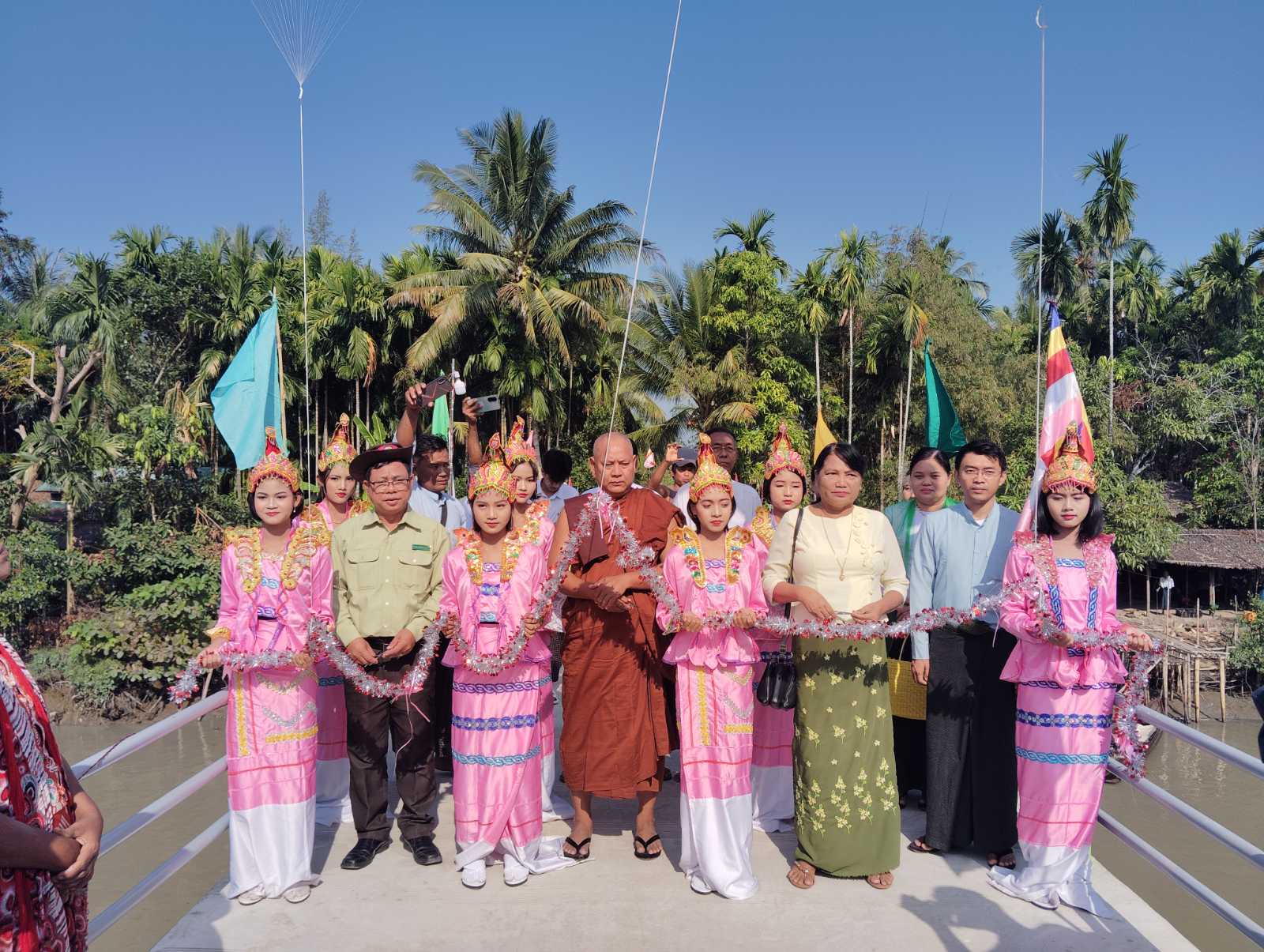 အဆိုပါ အခမ်းအနားတွင် တံတားဖြစ်မြောက်ရေး ဦးဆောင်ဆရာတော် ဘဒ္ဒန္တတိက္ခဓမ္မ၊ မြို့နယ်စီမံခန့်ခွဲရေးနှင့် အုပ်ချုပ်ရေးကော်မတီဥက္ကဋ္ဌ ဦးမြသိန်းမောင်၊ မြို့နယ်စီမံကိန်းရေးဆွဲရေးဦးစီးဌာန၊ လက်ထောက်ညွှန်ကြားရေးမှူး ဒေါ်သန့်စင်လှိုင်တို့က ဖဲကြိုးဖြတ်ဖွင့်လှစ်ပေးခဲ့ပြီး ကဗ္ဗည်းမော်ကွန်းအား အမွှေးနံ့သာရည်များ ပက်ဖြန်းပေးခဲ့သည်။ ထို့နောက် တံတားဖြစ်မြောက်ရေး ပါဝင်လှူဒါန်းပေးခဲ့သည့် အလှူရှင်များအား ဂုဏ်ပြုမှတ်တမ်းများ ပေးအပ်ချီးမြှင့်ခဲ့ပြီး ဖွင့်ပွဲအခမ်းအနားသို့ တက်ရောက်လာသည့် ဖျော်ဖြေရေးအဖွဲ့များအား ဂုဏ်ပြုဆုများ ပေးအပ်ချီးမြှင့်ခဲ့ကြောင်း သိရသည်။