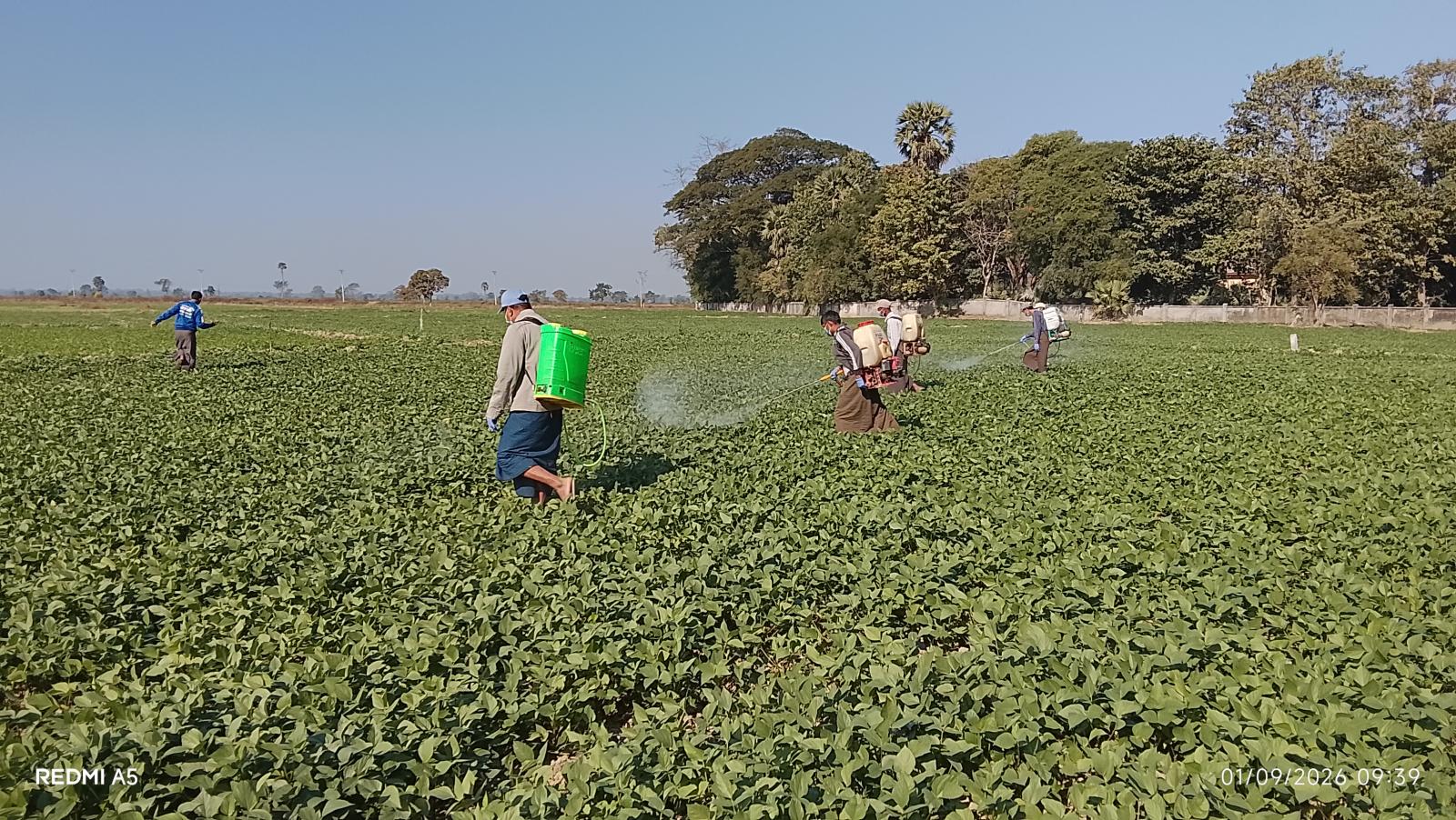 ထို့နောက် စိုက်ပျိုးရေးဦးစီးဌာနမှ ဝန်ထမ်းများက နွားကျင်ငယ်ရေ သုံးစွဲ၍ ရွက်ဖြန်းမြေဩဇာ ပြုလုပ်ပုံကို ပြသပြီးနောက် ပဲစိုက်ခင်းများအတွင်း ပက်ဖြန်းပြသခဲ့ကြကြောင်း သိရသည်။
