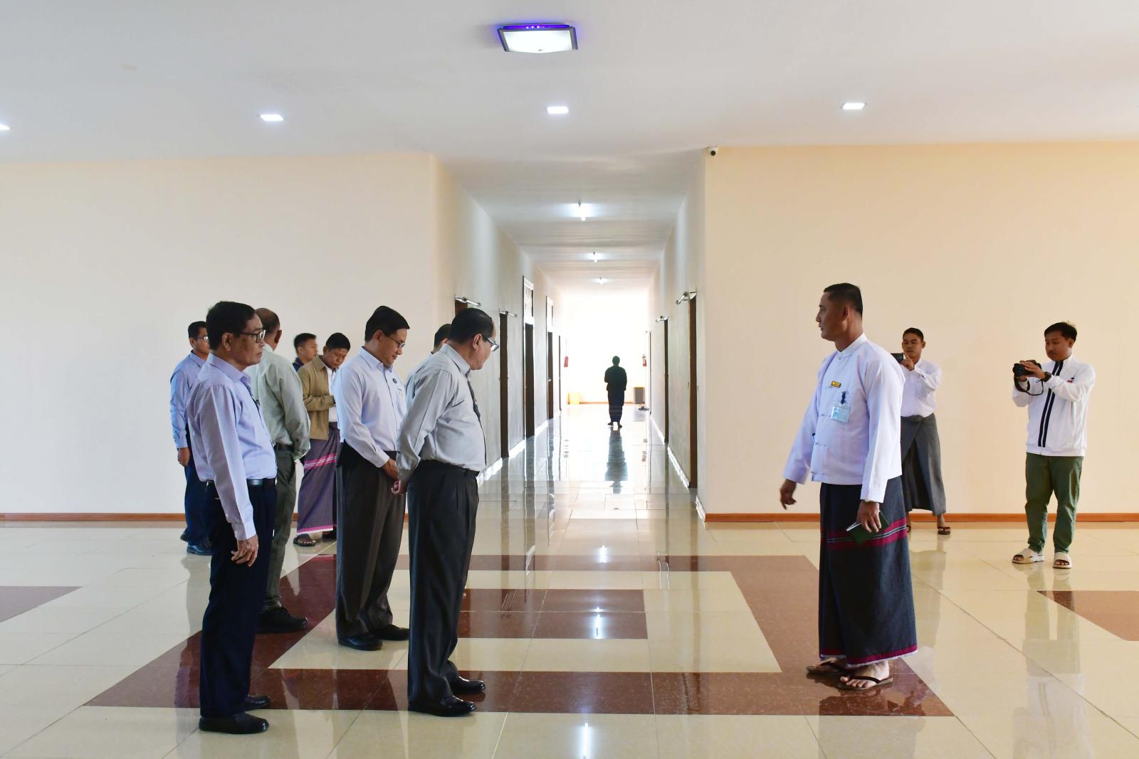ဦးစွာ ပြည်နယ်ဝန်ကြီးချုပ်နှင့်အဖွဲ့သည် မဲဆန္ဒရှင်ပြည်သူများရွေးချယ်တင်မြောက်သော ပြည်နယ်လွှတ်တော်ကိုယ်စားလှယ်များ ရွေးကောက်တင်မြောက်ခြင်း၊ ပြည်သူလူထုကိုကိုယ်စားပြုခြင်း၊ ဥပဒေပြုခြင်း၊ အပြန်အလှန်ထိန်းညှိခြင်း လုပ်ငန်းတာဝန်များထမ်းဆောင်နိုင်ရေး ပြည်နယ်လွှတ်တော်အစည်းအဝေးခန်းမအား ကြိုတင်ပြင်ဆင်ထားရှိမှု၊ လွှတ်တော်ကိုယ်စားလှယ်များထံဖြန့်ဝေမည့် ဥပဒေ၊ နည်းဥပဒေများ၊ သတင်းမီဒီယာခန်းမ၊ လွှတ်တော်ကိုယ်စားလှယ်များ၏ နားနေခန်း၊ စားသောက်ခန်း၊ အစည်းအဝေးခန်း၊ ဧည့်ခန်း၊ လွှတ်တော်ဥက္ကဋ္ဌ၊ ဒုဥက္ကဋ္ဌရုံးခန်း၊ ရေးရာကော်မတီရုံးခန်းများ၊ လွှတ်တော်စာကြည့်တိုက်၊ သင်တန်းခန်းမနှင့် ပြည်နယ်လွှတ်တော်ရုံးရှိ ဌာနခွဲ ၂ ခု၊ ဌာနစု ၁၀ စု၏ ရုံးခန်းများနှင့် လုပ်ငန်းဆောင်ရွက်ပုံများကို ကြည့်ရှုစစ်ဆေးရာ ပြည်နယ်လွှတ်တော်ရုံး ညွှန်ကြားရေးမှူးက ဥပဒေပြုရေးနှင့်လွှတ်တော်အစည်းအဝေးများ စနစ်တကျကျင်းပနိုင်ရေး၊ ဝန်ထမ်းများလုပ်ငန်းကျွမ်းကျင်မှုနှင့် အရည်အသွေးမြင့်မားရေးအတွက် စီမံဆောင်ရွက်ထားရှိမှု အခြေအနေများကို ရှင်းလင်းတင်ပြပြီး ပြည်နယ်ဝန်ကြီးချုပ်က လိုအပ်သည်များအား တာဝန်ရှိသူများနှင့် ပေါင်းစပ်ညှိနှိုင်းဖြည့်ဆည်းဆောင်ရွက်ပေးခဲ့သည်။