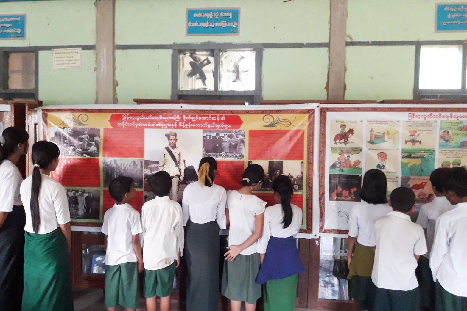 ထို့နောက် ဗိုလ်ချုပ်အောင်ဆန်း၏ အတ္ထုပ္ပတ္တိ၊ သမိုင်းဝင်မှတ်တမ်းဓာတ်ပုံများနှင့် မိန့်ခွန်းကောက်နုတ်ချက်များ၊ နံရံကပ်စာစောင်များ၊ စာအုပ်/ စာအုပ်စောင်များနှင့် အသိပညာပေးနံရံကပ်ဘုတ်များပြသရာ ကျောင်းသား/ သူများက လေ့လာကြည့်ရှုခဲ့ကြောင်းသိရသည်။