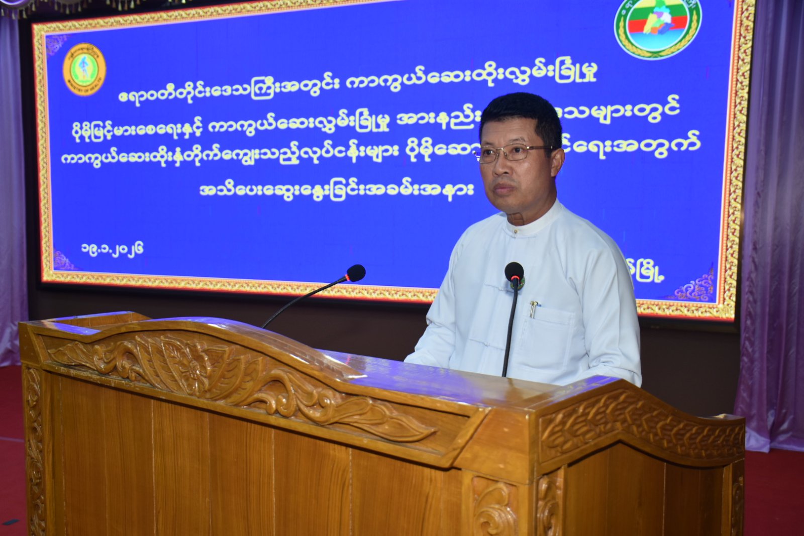 ဦးစွာ တိုင်းဒေသကြီးဝန်ကြီးချုပ်က“ ကျန်းမာရေးဝန်ကြီးဌာန၊ ပြည်သူ့ကျန်းမာရေး ဦးစီးဌာနအနေနဲ့ ပုံမှန်ကာကွယ်ဆေးလွှမ်းခြုံမှု ပိုမိုအားကောင်းစေရန်အတွက် အသက် (၁) နှစ် အောက်ကလေးငယ်များနှင့် ကိုယ်ဝန်ဆောင်မိခင်များအားပုံမှန်ကာကွယ်ဆေးထိုးလုပ်ငန်း၊ အသက် (၅) နှစ်အောက်ကလေးငယ်များတွင် ကာကွယ်ဆေးဖြင့်ကာကွယ်၍ရသော ရောဂါများဖြစ်ပွား၊ သေဆုံးမှုမှ လျော့ချရန်ရည်ရွယ်ပြီး Big Catch-up၊ Routine Catch-up နည်းလမ်းများဖြင့် ကာကွယ်ဆေးထိုးနှံတိုက်ကျွေးခြင်းလုပ်ငန်းများ၊ အသက်(၁၅)နှစ်အောက်ကလေးများကို လိုအပ်သောကာကွယ်ဆေးများအား အထူးအစီအစဉ်ဖြင့် ကာကွယ်ဆေးထိုးနှံတိုက်ကျွေးရေး လုပ်ငန်းများ (Special Immunization Activities)၊ ကာကွယ်ဆေးဖြင့် ကာကွယ်၍ရသော ရောဂါများ ဖြစ်ပွားချိန်တွင် တုံ့ပြန်ကာကွယ်ဆေး ထိုးနှံတိုက်ကျွေးခြင်းလုပ်ငန်းများ (Outbreak Response Immunization) စသည်ဖြင့် ကာကွယ်ဆေးထိုးနှံတိုက်ကျွေးခြင်းလုပ်ငန်းများကို ကလေးတိုင်း ဆီသို့ရောက်ရှိအောင်နည်းလမ်းမျိုးစုံဖြင့် အရှိန်အဟုန်မြှင့်ဆောင်ရွက်လျက်ရှိပါ ကြောင်း၊ ထပ်မံပြီး ပုံမှန်ကာကွယ်ဆေးထိုးလုပ်ငန်းတွင် ကျောင်းနေအရွယ် KG ကလေးငယ်များအား ကျောင်းအခြေပြု ဆုံဆို့-မေးခိုင်ရောဂါ ကာကွယ်ဆေးထိုးလုပ်ငန်း၊ အသက် (၉)နှစ်မှ (၁၀)နှစ်အရွယ် အမျိုးသမီးငယ်များကို ကျောင်းအခြေပြုနှင့် ပြည်သူလူထုအခြေပြု HPVကာကွယ်ဆေးထိုးလုပ်ငန်း၊ ကျန်းမာရေးဝန်ထမ်းများအား နှစ်စဉ်ရာသီတုပ်ကွေးရောဂါ ကာကွယ်ဆေးထိုးလုပ်ငန်း၊ ကိုဗစ်-၁၉ ရောဂါကာကွယ်ဆေးထိုး လုပ်ငန်းများကိုလည်း Life Course Approach ဖြင့် ဆောင်ရွက်ပေးလျက်ရှိပါကြောင်း၊ ယခုထပ်မံတိုးမြှင့် အားဖြည့် ဆောင်ရွက်မည့်အစီအစဉ်များသည် အခြေခံအားဖြင့် ကျန်းမာရေးဝန်ကြီးဌာနက ဦးဆောင်ရေးဆွဲခဲ့သည့်အမျိုးသားကာကွယ်ဆေးထိုးလုပ်ငန်းဆိုင်ရာ မဟာဗျူဟာ (၂၀၂၅-၂၀၂၉) ခုနှစ်တွင် ဖော်ထုတ်ခဲ့သည့် ကျန်းမာရေးဝန်ထမ်းများ သွားလာရန်ခက်ခဲသည့်ဒေသများ၊ နိုင်ငံတော်အစိုးရ၏ အစီအစဉ်ဖြင့် သွားရောက်နိုင်သည့်ဒေသများ၊ လူနေထူထပ်ပြီးရွှေ့ပြောင်းလူဦးရေများသည့် မြို့ပေါ်ဆင်ခြေဖုံးရပ်ကွက်များ၊ သွားလာရခက်ခဲသောဒေသများက ကလေးငယ်များနှင့် ကိုယ်ဝန်ဆောင်မိခင်များအားလုံးကို လိုအပ်သည့်ကာကွယ်ဆေးများ အရှိန်အဟုန်မြှင့် ထိုးနှံတိုက်ကျွေးနိုင်ရေးအတွက် ယခုအစည်းအဝေးကို တက်ရောက်လာကြသူများရဲ့ အကြံပြုချက်များ၊ ပံ့ပိုးကူညီမှုများဖြင့် ဆက်လက်ဆောင်ရွက်သွားမည်ဖြစ်ပါကြောင်း၊ ကျန်းမာရေးဝန်ကြီးဌာနအနေဖြင့် နိုင်ငံတော် စဉ်ဆက်မပြတ်ဖွံ့ဖြိုးတိုးတက်ခိုင်မာစေရေးအတွက် နိုင်ငံ့အနာဂတ်အတွက် သားကောင်းရတနာ၊ သမီးကောင်းရတနာများဖြစ်လာကြမည့် နိုင်ငံတစ်ဝန်းတွင် နေထိုင်သည့်ကလေးငယ်များ၊ ကိ