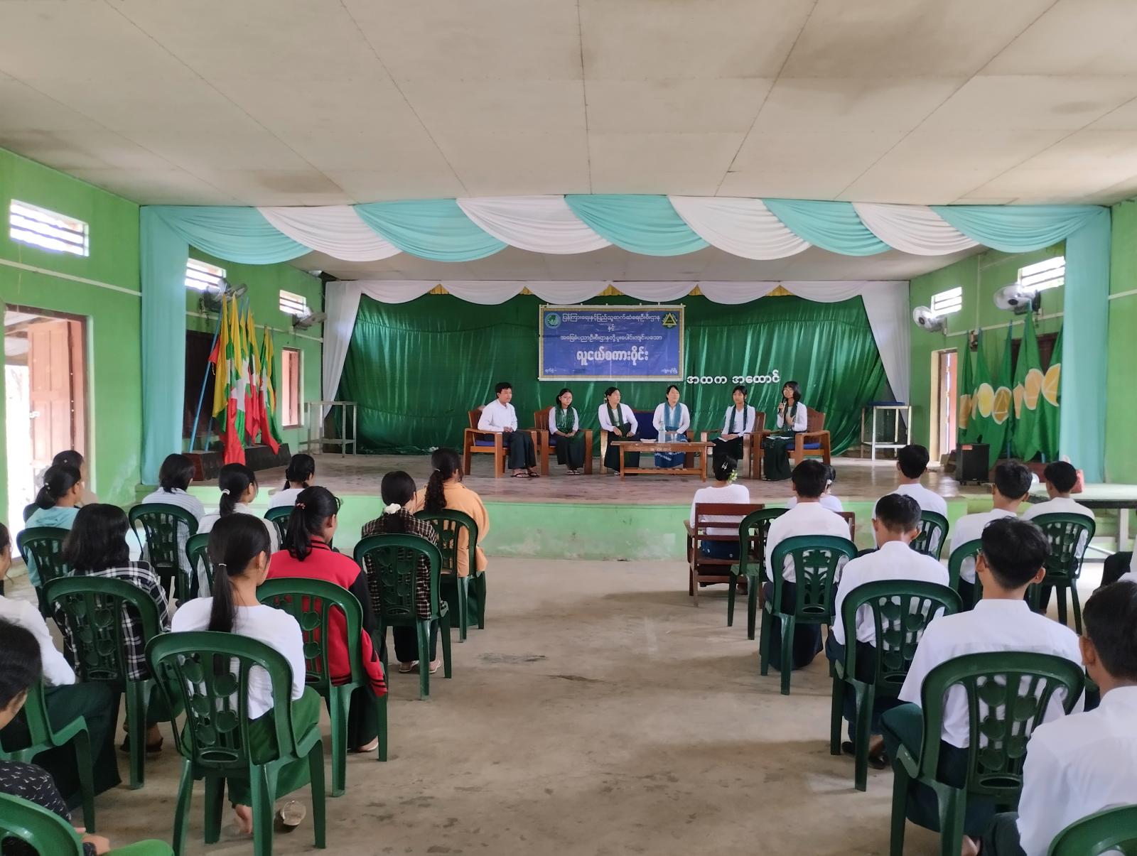 ဦးစွာ ပြန်ကြားရေးနှင့်ပြည်သူ့ဆက်ဆံရေးဦးစီးဌာန၊ ဦးစီးအရာရှိ ဒေါ်သန်းသန်းစိုးက လူငယ်စကားဝိုင်း ကျင်းပပြုလုပ်ခြင်းနှင့် ပတ်သက်၍၎င်း၊ ဖွံ့ဖြိုးတိုးတက်သူများ၏ စံနမူနာယူသင့်သည့် အလေ့အကျင့်များကို၎င်း၊ ဗလငါးတန်ပြည့်စုံသည့်လူငယ်များဖြစ်လာစေရန် ကြိုးစားဆောင်ရွက်သင့်သည်များကို ၎င်းဆွေးနွေးပြောကြားသည်။