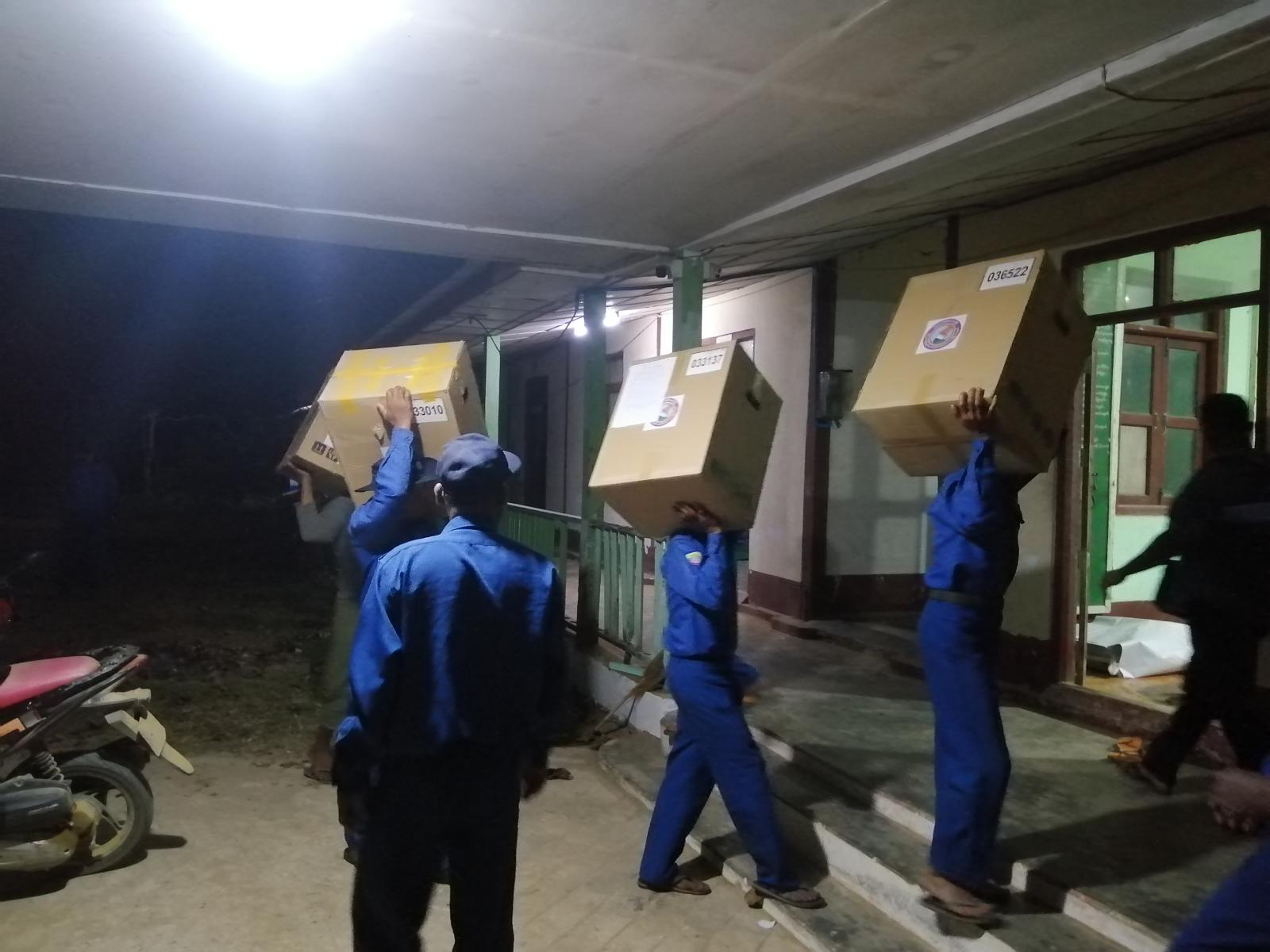 ထို့ပြင်မဲပေးစက်နှင့် ဆက်စပ်ပစ္စည်းများ၏ လုံခြုံရေးအား မြို့ရဲတပ်ဖွဲစခန်းမှတာဝန်ရှိသူများ၊ ပြည်သူ့လုံခြုံရေးနှင့် အကြမ်းဖက်နှိမ်နှင်းရေးအဖွဲ့ဝင်များ၊ မြို့ပေါ်ရပ်/ ကျေးအုပ်ချုပ်ရေးမှူးများနှင့် ပူးပေါင်း၍ နေ့ညလုံခြုံရေးကို ဆက်လက်ဆောင်ရွက်လျက်ရှိကြောင်း သိရသည်။