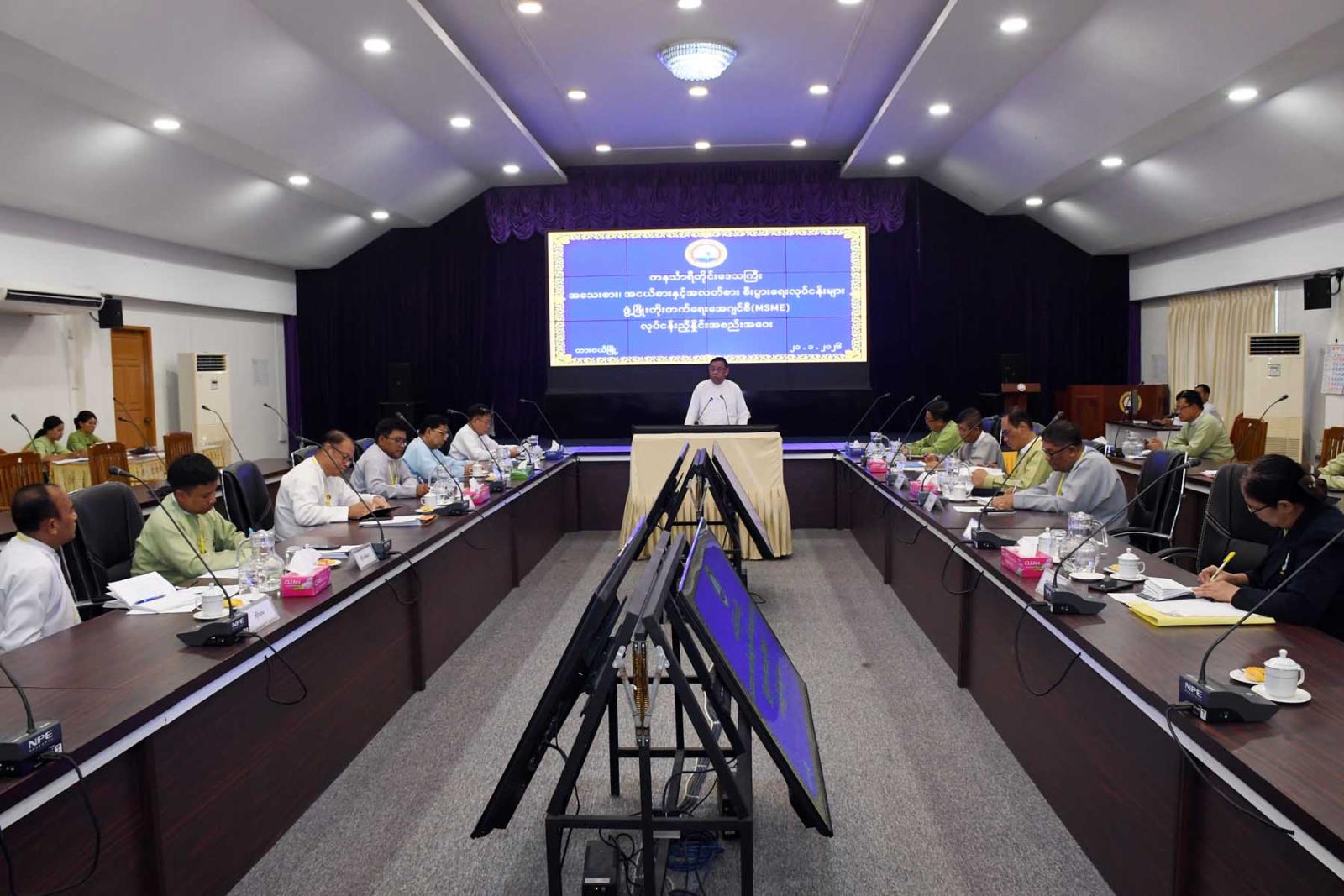 တနင်္သာရီတိုင်းဒေသကြီး၊ အသေးစား၊အငယ်စားနှင့်အလတ်စားစီးပွားရေးလုပ်ငန်းများ ဖွံ့ဖြိုးတိုးတက်ရေးအေဂျင်စီ (MSME)လုပ်ငန်းညှိနှိုင်းအစည်းအဝေးကို ဇန်နဝါရီ ၂၁ ရက် မွန်းလွဲပိုင်းက ထားဝယ်မြို့၊ တိုင်းဒေသကြီးအစိုးရအဖွဲ့ရုံး၊ အစည်းအဝေးခန်းမ၌ ကျင်းပခဲ့သည်။