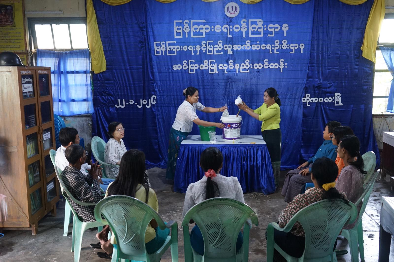 သင်တန်းတွင် နည်းပြအဖြစ် မြို့နယ်ပြန်ကြားရေးနှင့်ပြည်သူ့ဆက်ဆံရေးဦးစီးဌာန၊ ဒုတိယဦးစီးမှူး ဒေါ်ယဉ်မင်းဝင်းက ဆပ်ပြာဆီကုန်ကြမ်းအား ဘက်စုံသုံးဆပ်ပြာဆီအဖြစ် ပြုလုပ်ပုံ နည်းအဆင့်ဆင့်အား လက်တွေ့ဖော်စပ်ပြသခဲ့ပြီး သင်တန်းသို့ မြို့နယ်အတွင်းရှိ ကုန်စုံဆိုင်များ၊ အိမ်ရှင်မများ တက်ရောက်လေ့လာခဲ့ကြကြောင်း သိရသည်။