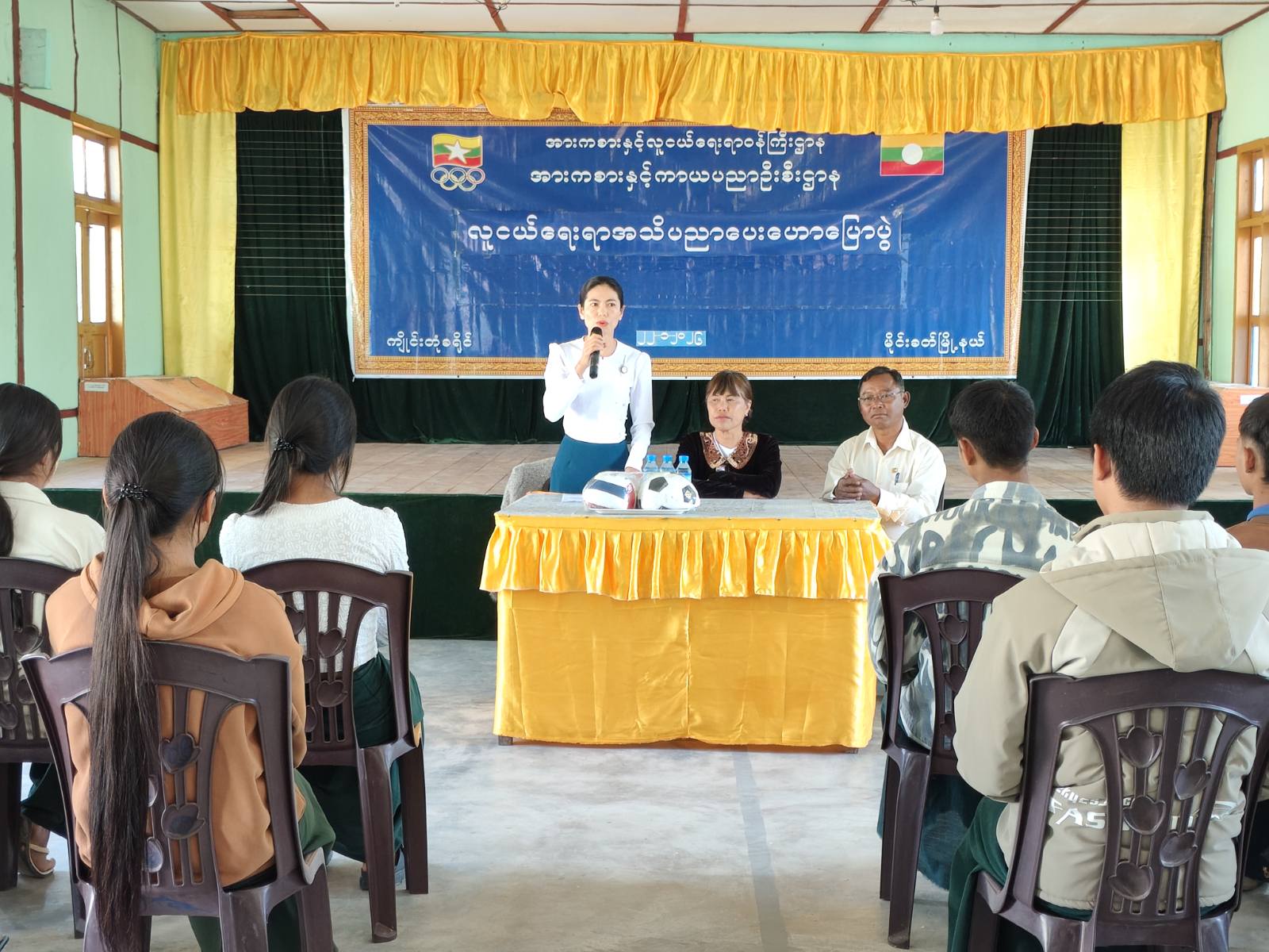 အခမ်းအနားတွင် အခြေခံပညာအထက်တန်းကျောင်း(မိုင်းခတ်) ကျောင်းအုပ်ဆရာမကြီး ဒေါ်လွင်လွင်နိုင်က အဖွင့်အမှာစကားပြောကြားရာတွင် လူငယ်နှင့်စာရိတ္တပိုင်းဆိုင်ရာ သိကောင်းစရာများအကြောင်း ပြောကြားပြီး မြို့နယ်ပြန်ကြားရေးနှင့်ပြည်သူ့ဆက်ဆံရေးဦးစီးဌာန ဦးစီးမှူးဒေါ်နန်းနွယ်နီအောင်က လူငယ်နှင့်ဗလငါးတန်ဖွံ့ဖြိုးရေးနှင့် စာဖတ်ခြင်းအကျိုးကျေးဇူးများအကြောင်း၊ မြို့နယ်အားကစားနှင့်ကာယပညာဦးစီးဌာန နည်းစနစ်မှူး ဦးကျော်ဌေးက လူငယ်နှင့်အားကစား၊ လူငယ်နှင့်ကျန်းမာရေးအကြောင်းတို့ကို အသိပညာပေးဟောပြောကာဟောပြောပွဲတွင် မေးခွန်းများဖြေဆိုနိုင်သည့် ကျောင်းသူတစ်ဦးကို ဂုဏ်ပြုငွေပေးအပ်ပြီး ကျောင်းသား၊ ကျောင်းသူများအတွက် အားကစားအထောက်အကူပစ္စည်းများ ပေးအပ်ခဲ့သည်။