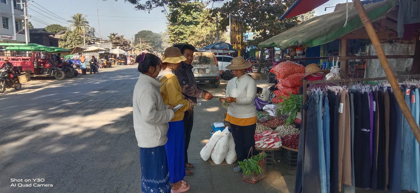 ကချင်ပြည်နယ်၊ ဗန်းမော်ခရိုင်၊ ရွှေကူမြို့နယ်၌ ပါတီစုံဒီမိုကရေစီအထွေထွေရွေးကောက်ပွဲ အပိုင်း (၃) ကို အောင်မြင်စွာကျင်းပနိုင်ရန်နှင့် ပြည်သူများကျယ်ကျယ်ပြန့်ပြန့် သိရှိနိုင်စေရန်အတွက်မြို့ပေါ်ရပ်ကွက်များအတွင်းသို့ အသိပေးနှိုးဆော်မှုများကို ဆောင်ရွက်လျက်ရှိရာ ယနေ့နံနက်ပိုင်းက လူစည်ကားရာနေရာများတွင် လက်ကမ်းစာစောင် များဖြန့်ဝေခဲ့ကြသည်။
