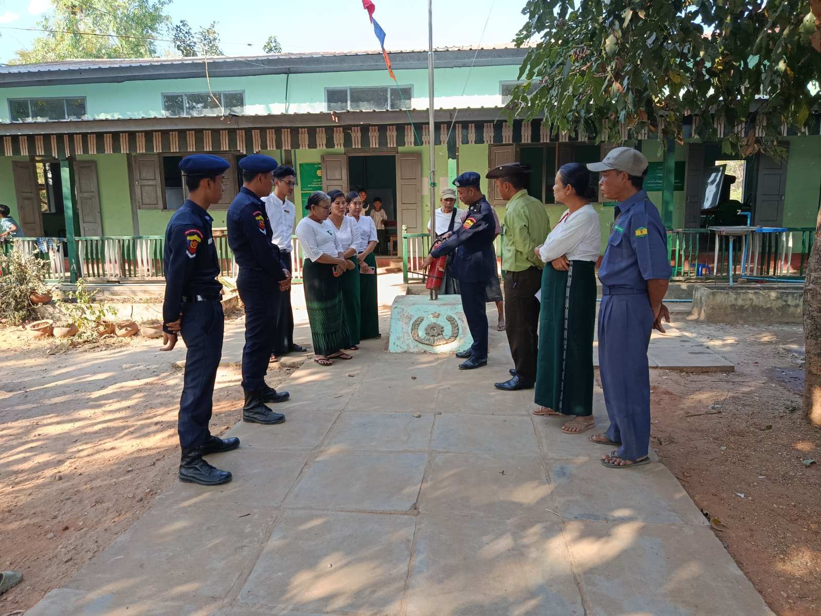 ထိုသို့ ကွင်းဆင်းစစ်ဆေးရာတွင် မြို့နယ်မီးသတ်ဦးစီးမှူး ဦးကျော်မင်းထိုက်နှင့် မီးသတ်တပ်ဖွဲ့ဝင်များ၊ သက်ဆိုင်ရာမြို့ အုပ်ချုပ်ရေးမှူးများက မဲရုံကျင်းပမည့် တည်နေရာများတွင် မီးလောင်မှု၊ မီးလန့်မှုများ မဖြစ်ပေါ်စေရေး၊ မီးဘေးလုံခြုံမှုရှိစေရန်၊ မီးဘေးလုံခြုံရေးအတွက် လိုက်နာဆောင်ရွက်ရမည့်အချက်များ၊ မီးဘေးကြိုတင်ကာကွယ်ရေး လုပ်ငန်းစဉ်များ၊ မီးသတ်ဆေးဘူး ကိုင်တွယ်အသုံးပြုနည်းလမ်းများ၊ မီးသတ်ဆေးဘူး အပါအဝင် အခြားနည်းလမ်းများဖြင့် မီးငြှိမ်းသတ်နည်းများ သရုပ်ပြသဆောင်ရွက်ပေးခဲ့ပြီး လိုအပ်သည်များအား ဆွေးနွေးမှာကြားခဲ့ကြောင်း သိရသည်။