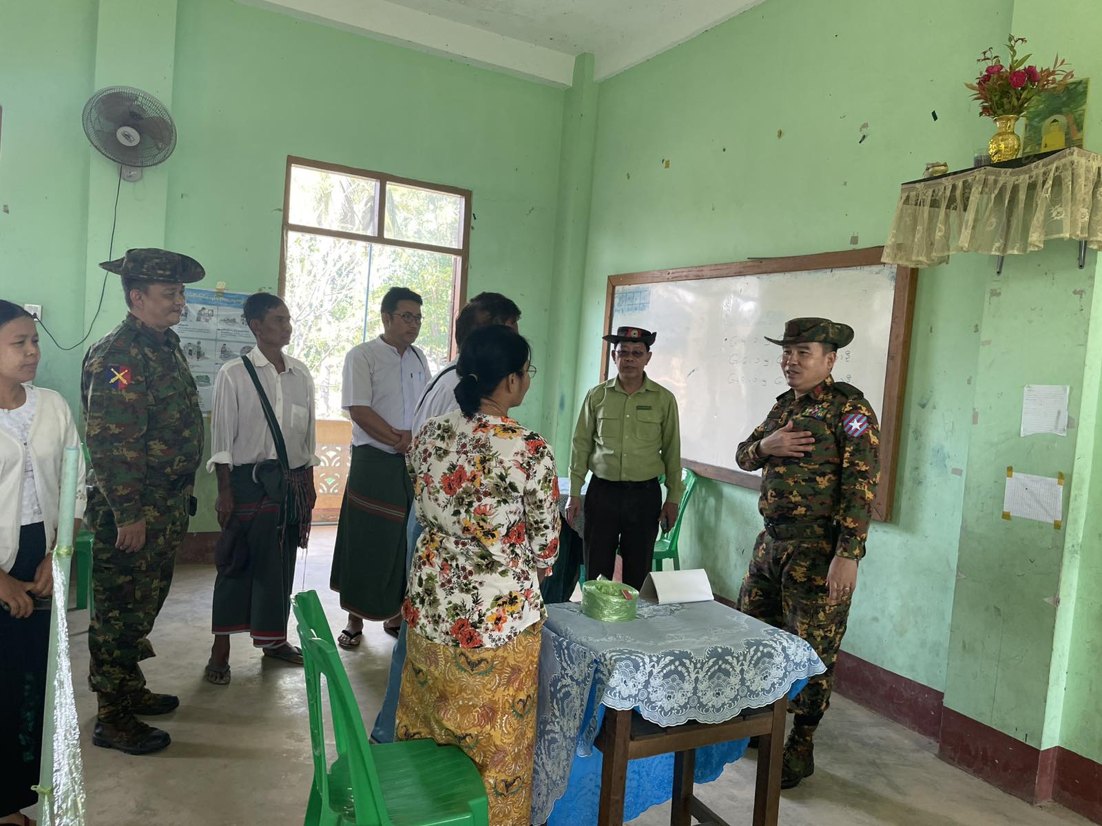 ထိုသို့ဆောင်ရွက်ရာတွင် အမှတ် ၁၂ စစ်ဆင်ရေးကွပ်ကဲမှုဌာနချုပ်၊ ဒုစစ်ဆင်ရေးကွပ်ကဲရေးမှူး ဗိုလ်မှူးကြီး အောင်သက်ထွေး၊ ဒုတိယခရိုင်အုပ်ချုပ်ရေးမှူး ဉီးမိုးကျော်အောင်၊ မြို့နယ်ရွေးကောက်ပွဲကော်မရှင်အဖွဲ့ခွဲဝင်များက မဲရုံအဖြစ်ဆောင်ရွက်မည့် တည်နေရာ၊ အဆောက် အဉီး၊ မဲရုံပြင်ဆင်မှုနှင့်လုံခြုံရေးဆိုင်ရာကိစ္စရပ်များကို ကြည့်ရှုစစ်ဆေးကာ လိုအပ်သည်များ ပေါင်းစပ်ညှိနှိုင်းပေးပြီး မဲဆန္ဒရှင်ပြည်သူများအား “ဒို့အတူတူမဲပေးကြမည်” လက်ကမ်းစာ စောင်များကို “ဒို့အတူတူမဲပေးကြမည်” လက်ကမ်းစာ စောင်များကို နှိုးဆော်ဖြန့်ဝေပေးခဲ့ကြောင်း သိရသည်။