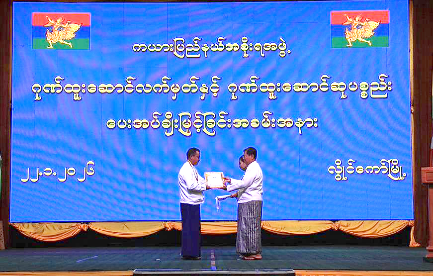 (၇၄) နှစ်မြောက် ကယားပြည်နယ်နေ့အထိမ်းအမှတ်ပြခန်းများ ဆုချီးမြှင့်ပွဲ၊ ဂုဏ်ထူးဆောင်လက်မှတ်နှင့် ဂုဏ်ထူးဆောင်ဆုပစ္စည်းများ ချီးမြှင့်ပေးအပ်ခြင်းအခမ်းအနားကို ဇန်နဝါရီ ၂၂ ရက် နံနက်ပိုင်းက လွိုင်ကော်မြို့ ပြည်နယ်ခန်းမ၌ ကျင်းပသည်။
