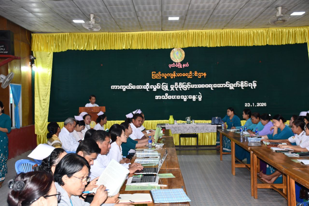 နိုင်ငံတစ်ဝန်း ကာကွယ်ဆေးထိုးလွှမ်းခြုံမှု ပိုမိုမြင့်မားစေရေးနှင့် ကာကွယ်ဆေးလွှမ်းခြုံမှုအားနည်းသည့် ဒေသများတွင် ကာကွယ်ဆေးထိုးနှံတိုက်ကျွေးသည့်လုပ်ငန်းများ ပိုမိုဆောင်ရွက်နိုင်ရေးအတွက် အသိပညာပေးဆွေးနွေးပွဲကို ယမန်နေ့ နံနက်ပိုင်းက မြို့နယ်ပြည်သူ့ကျန်းမာရေးဦးစီးဌာန၊ အစည်းအဝေးခန်းမတွင် ကျင်းပပြုလုပ်ခဲ့သည်။