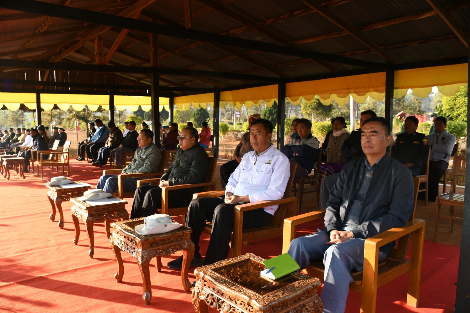 ထို့နောက် ရှမ်းပြည်နယ်အစိုးရအဖွဲ့ဝင် ပြည်နယ်လမ်းပန်းဆက်သွယ်ရေးဝန်ကြီး ဦးနေဝင်းအောင်နှင့်အတူ တာဝန်ရှိသူများက စစ်ရာထူးခန့်ထားရေးခန်းမဆောင်၌ ပြည်သူ့စစ်မှုထမ်းသင်တန်းသားများနှင့် အတူတကွ လက်ဖက်ရည်သုံးဆောင်ခဲ့ကြကြောင်း သိရသည်။