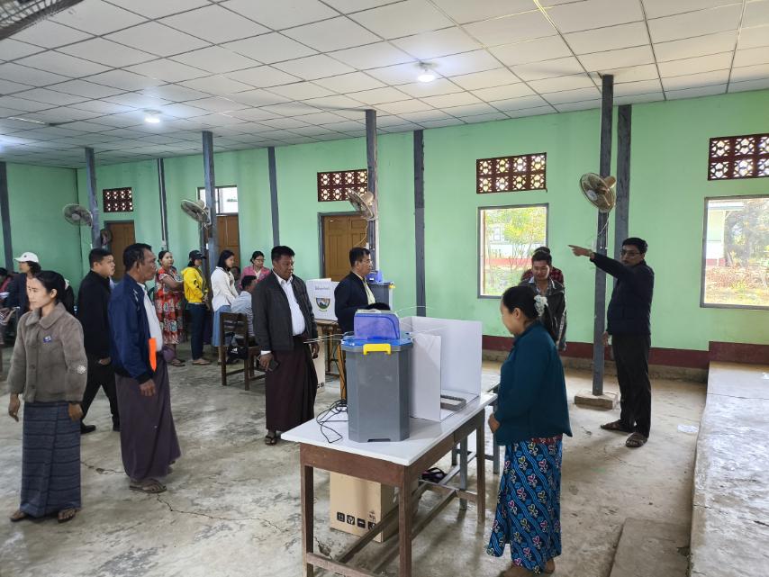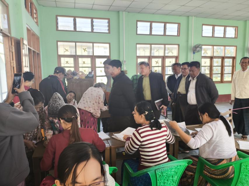 မြို့နယ်အတွင်းရှိ မဲရုံအသီးသီးတွင် မဲဆန္ဒရှင်ပြည်သူများက မဲပေးစက်ဖြင့် လွှတ်တော်အသီးသီးအတွက် ကိုယ်စားလှယ်များကို ဆန္ဒပြုနေမှုများ၊ မဲရုံမှူးနှင့်မဲရုံ တာဝန်ရှိသူများဆန္ဒမဲပေးနိုင်ရန်ဆောင်ရွက်နေခြင်းများကို ခရိုင်စီမံခန့်ခွဲရေးနှင့် အုပ်ချုပ်ရေးကော်မတီဥက္ကဋ္ဌ ဦးခင်မောင်ထွေးနှင့် ခရိုင်ရွေးကောက်ပွဲကော်မရှင်အဖွဲ့ခွဲဥက္ကဋ္ဌ ဦးဖေအောင်သူတို့က ကြည့်ရှုအားပေးသည်။