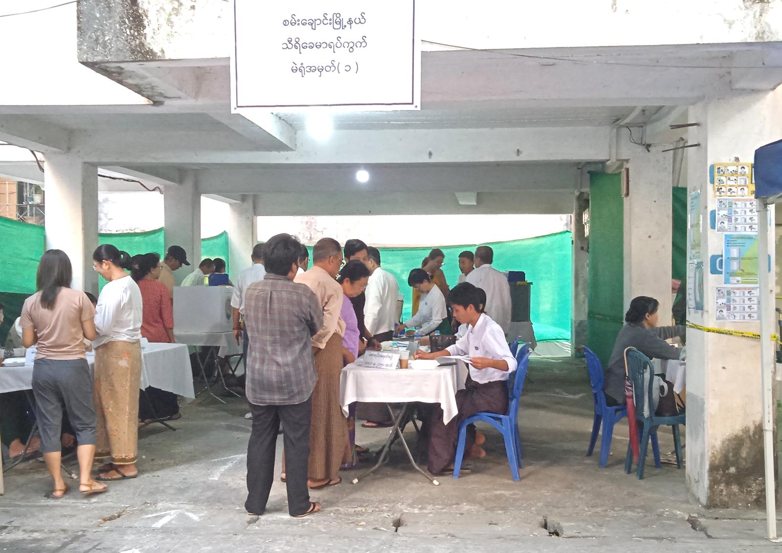 ရန်ကုန်တိုင်းဒေသကြီး၊ အလုံခရိုင်၊ စမ်းချောင်းမြို့နယ်တွင်၊ ပါတီစုံဒီမိုကရေစီအထွေထွေရွေးကောက်ပွဲ အပိုင်း (၃) ကို ယနေ့နံနက်ပိုင်းက စတင်ကျင်းပလျက်ရှိရာ မဲရုံများတွင် ပြည်သူများအနေဖြင့် ဆန္ဒမဲပေးလျက်ရှိကြောင်း သိရသည်။