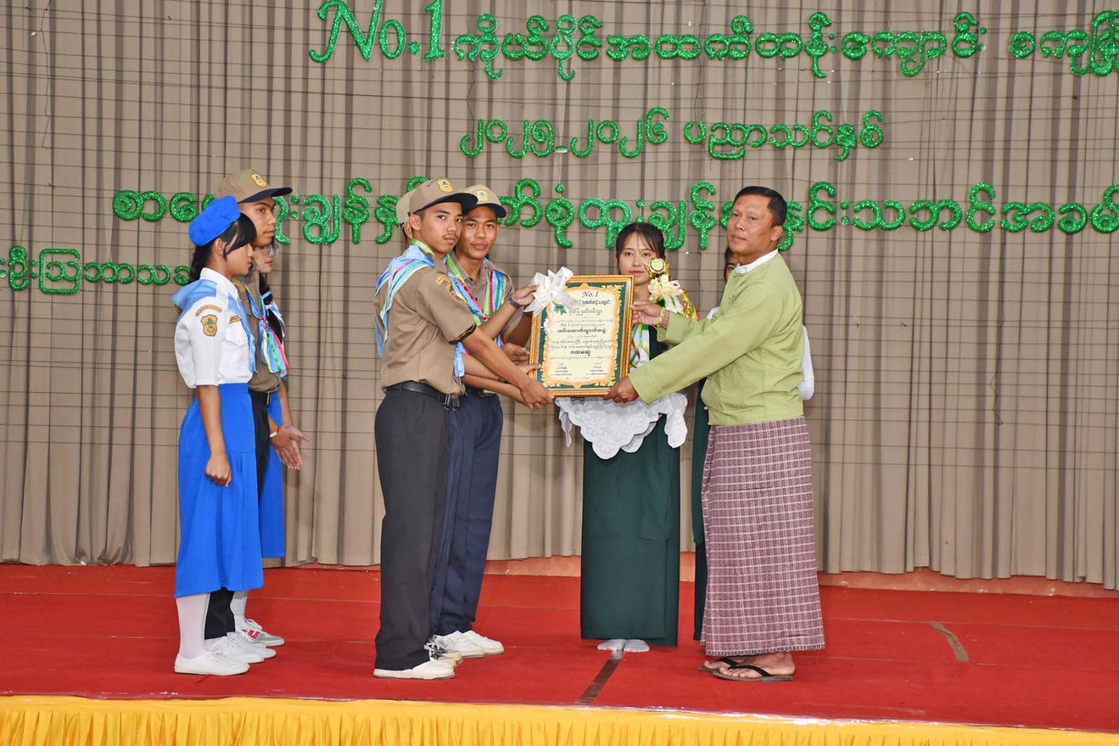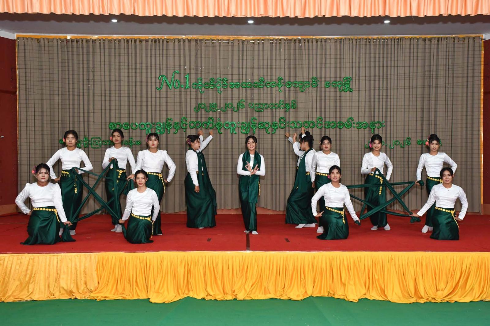 ဆက်လက်ပြီး စကုမြို့ NO.1 ကိုယ်ပိုင် အထက်တန်းကျောင်းမှ ကျောင်းသား၊ ကျောင်းသူလေးများက No.1 တို့ကျောင်းအောင်မြေ၊ ပြည်ထောင်စုအင်အား၊ အလှကမ္ဘာမြေ၊ စကားဝါမြေ၊ လက်ခတ်သံ၊ ဘွန္တော၊ လက်ပံပွင့်ကောက်၊ ရွှင်လမ်းကာစိတ်ချမ်းသာကြစေ၊ မဟာဆန်သူ၊ အဖြူရောင် သံစဉ်၊ ဗိုလ်အောင်ဒင်၊ ပန်းကလေးများ၏ ဥယျာဉ်မှူး၊ ပန်းဥယျာဉ်ဝယ် ဆိုကြကကြမယ်၊ ရုန်းတော် လွှတ်တော်၊ ဆယ်ခြောက်နှစ်မ၊ မှုံရွှေရည် စသည့် တေးသီချင်းများဖြင့် ဖျော်ဖြေတင်ဆက်ခဲ့ကြပြီး ပညာရေး စုံညီပွဲတော်ကို ပျော်ရွှင်စွာဆင်နွှဲခဲ့သည်။