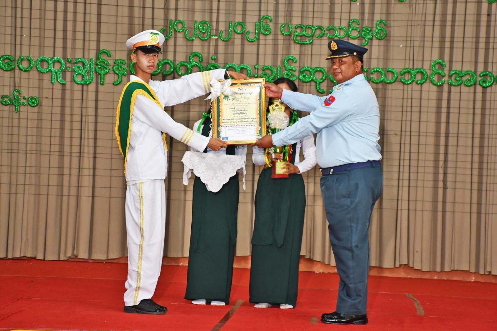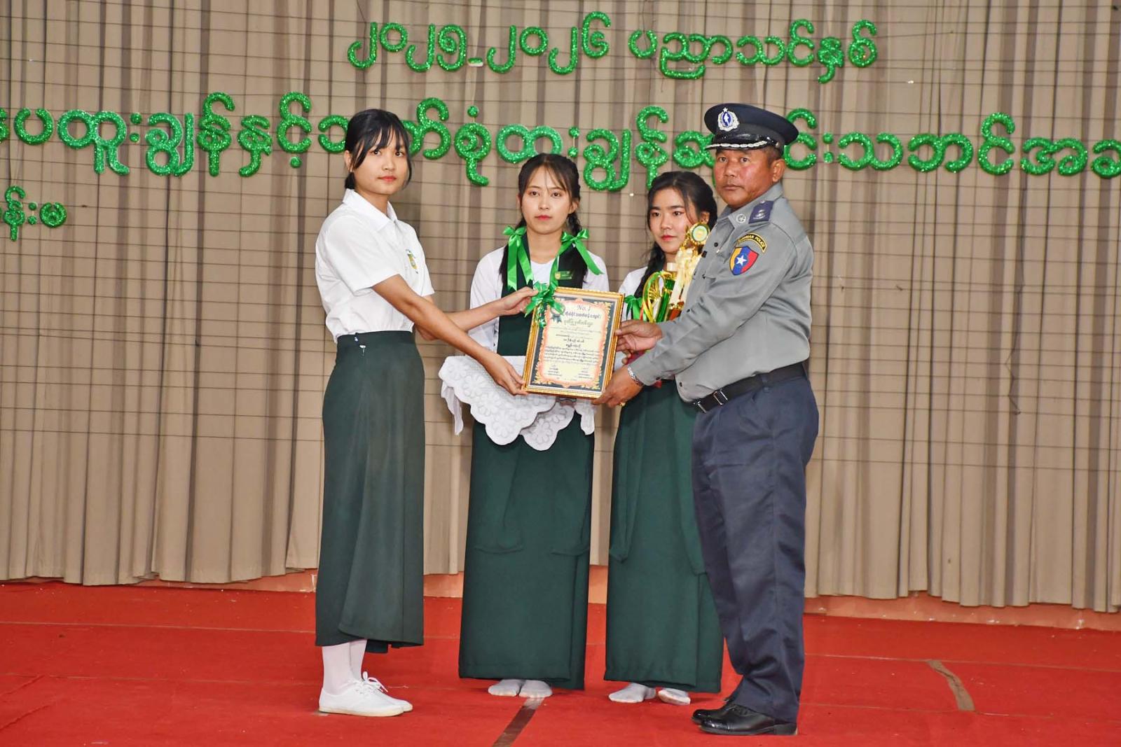 ထို့နောက် မင်းဘူးခရိုင်စီမံအုပ်ချုပ်ရေးအဖွဲ့ ဥက္ကဋ္ဌ ခရိုင်အုပ်ချုပ်ရေးမှူး ဦးအေးလွင်၊ မြို့နယ် အုပ်ချုပ်ရေးမှူး ဦးအောင်မြင်နှင့် တာဝန်ရှိသူများက အဆိုပါကျောင်းမှ နှစ်ထပ်ကွမ်း၊ သုံးထပ်ကွမ်း လူရည်ချွန် မောင်မယ်များ၊ ၂၀၂၅ ခုနှစ် တက္ကသိုလ်ဝင်စာမေးပွဲ သိပ္ပံဘာသာတွဲတွင် မြန်မာတစ်နိုင်ငံလုံး အမှတ်အများဆုံးရရှိသူနှင့် တိုင်းဒေသကြီးအဆင့် ဝိဇ္ဇာဘာသာတွဲတွင် ဒုတိယအမှတ်အများဆုံး ရရှိသူများ၊ ဗဟိုအဆင့်၊ တိုင်းဒေသကြီး၊ ခရိုင်၊ မြို့နယ်အဆင့် အထိမ်းအမှတ်ပြိုင်ပွဲများတွင် ဆောင်းပါး၊ စာစီစာကုံး၊ ကဗျာ၊ ပန်းချီ၊ ကာတွန်း၊ ပိုစတာပြိုင်ပွဲများ၊ ဘင်ခရာပြိုင်ပွဲ၊ ကင်းထောက်ပြိုင်ပွဲနှင့် အားကစားပြိုင်ပွဲများတွင် စာပေထူးချွန်နှင့် ဘက်စုံဖွံ့ဖြိုးရေး ထူးချွန်ဆုရရှိခဲ့သူများ၊ ၂ဝ၂၅-၂၀၂၆ ပညာသင်နှစ် Grade(10 - 11 - 12) အတန်းများ အလိုက် စာပေထူးချွန်ဆုရရှိသူများနှင့် ၂၀၂၅ တက္ကသိုလ်ဝင်စာမေးပွဲတွင် ဂုဏ်ထူးအများဆုံးရရှိအောင် သင်ကြားပြသပေးခဲ့သော သင်ကြားရေး ထူးချွန်ဆုရ ဆရာ၊ ဆရာမများအားလုံးကို ဂုဏ်ပြုဆုငွေ၊ ဆုတံဆိပ်နှင့် ဂုဏ်ပြုမှတ်တမ်းလွှာများကို ပေးအပ်ချီးမြှင့်ခဲ့ကြေင်း သိရသည်။
