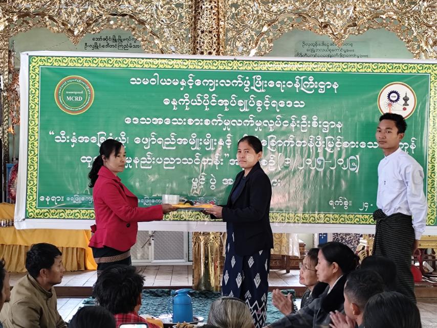 သင်တန်းဖွင့်ပွဲတွင် ဒေသအသေးစားစက်မှုလက်မှုလုပ်ငန်းဦးစီးဌာနမှ ဒေသဦးစီးမှူး ဒေါ်အေးအေးသန်းက အဖွင့်အမှာစကားပြောကြားပြီး သင်တန်းသုံးပစ္စည်းများကို ပေးအပ်ခဲ့ရာသင်တန်းသူတစ်ဦးမှ လက်ခံရယူခဲ့သည်။ ထို့နောက်ဒေသ စီမံကိန်းဦးစီးဌာနမှ ဒုတိယညွှန်ကြားရေးမှူးဒေါ်သန်းသန်းဝင်းက သင်တန်းသူ၊ သင်တန်းသားများကို သင်တန်းမှတ်စု စာအုပ်များပေးအပ်ခဲ့သည်။