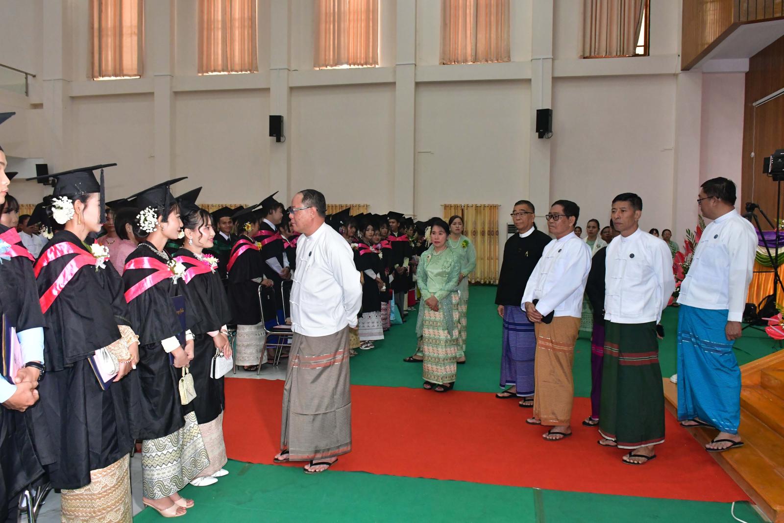 အဆိုပါဘွဲ့နှင်းသဘင်အခမ်းအနားသို့ တက်ရောက်ခဲ့သော ပြည်နယ်ဝန်ကြီးချုပ် ဦးစောမြင့်ဦးနှင့် ပြည်နယ်အစိုးရ အဖွဲ့ဝင်များသည် ဘွဲရမောင်မယ်များနှင့် မိဘဆွေမျိုးများအား ရင်းရင်းနှီးနှီးတွေ့ဆုံ၍ ဂုဏ်ပြုအားပေးစကားများ ပြောကြားခဲ့ကြောင်း သတင်းရရှိသည်။
