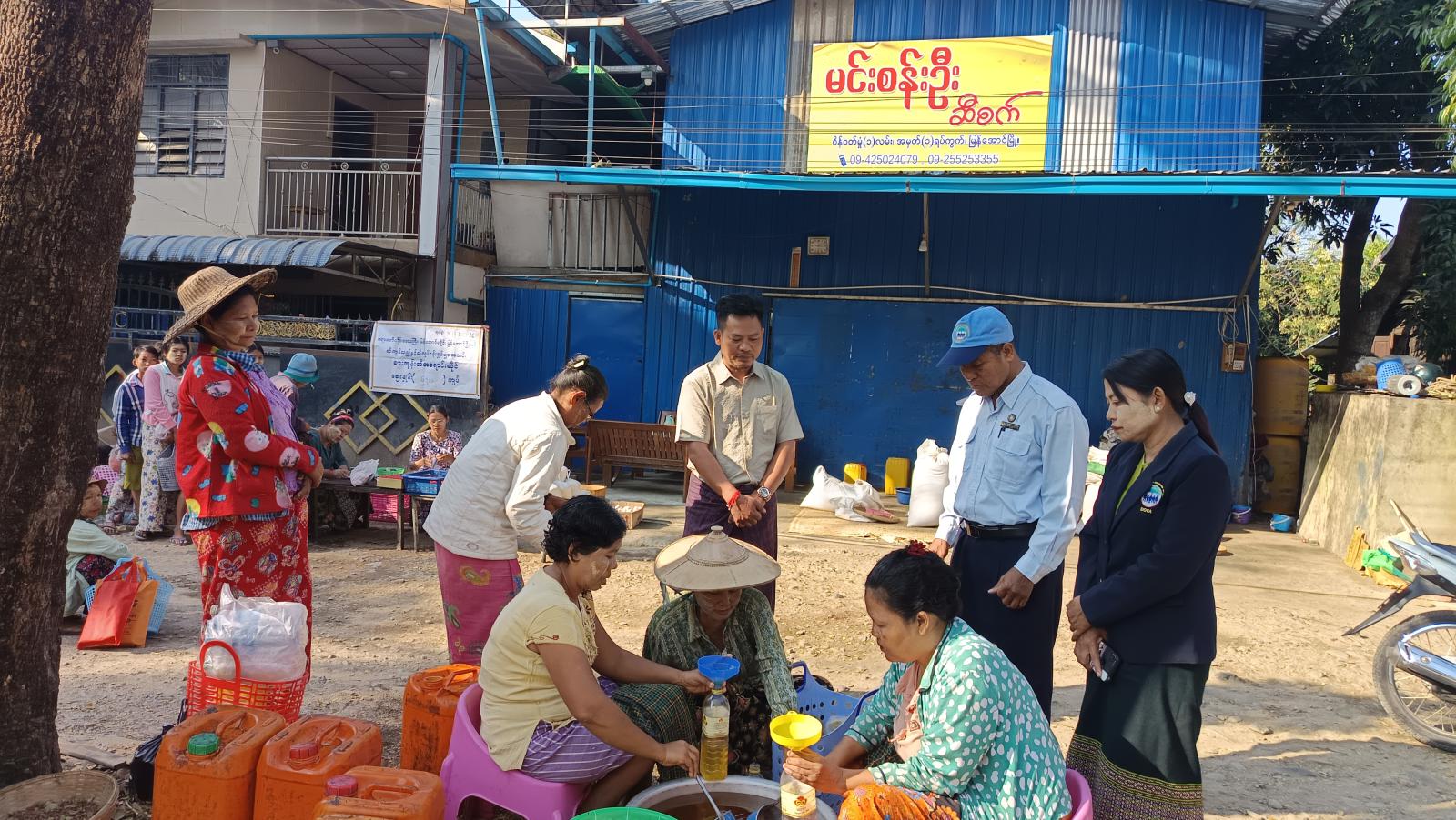 မြန်အောင်မြို့နယ် ဆီကုန်သည်နှင့် ဆီလုပ်ငန်းရှင်များအသင်းမှ စားအုန်းဆီတစ်ပိဿာ(၆၇၁၁) ကျပ်၊ ဆန်တစ်ပြည်(၂၀၀၀)ကျပ်၊ ကြက်ဥတစ်လုံး ၃၀၀ ကျပ်နှုန်းဖြင့်ရောင်းချပေးမှုအား တိုင်းဒေသကြီး ဆီကုန်သည်နှင့်ဆီလုပ်ငန်းရှင်များအသင်း၊ စီမံခန့်ခွဲမှုကော်မတီအဖွဲ့ဝင် ဦးမင်းဇော်ဦး၊ မြို့နယ်စားသုံးသူရေးရာဦးစီးဌာန ဦးစီးအရာရှိ ဦးမြင့်အောင်နှင့်ဝန်ထမ်းများ၊ ဌာနဆိုင်ရာတာဝန်ရှိသူများနှင့် ရပ်မိရပ်ဖတို့က ကြည့်ရှုအားပေးကူ ညီဆောင်ရွက်ပေးခဲ့ကြသည်။