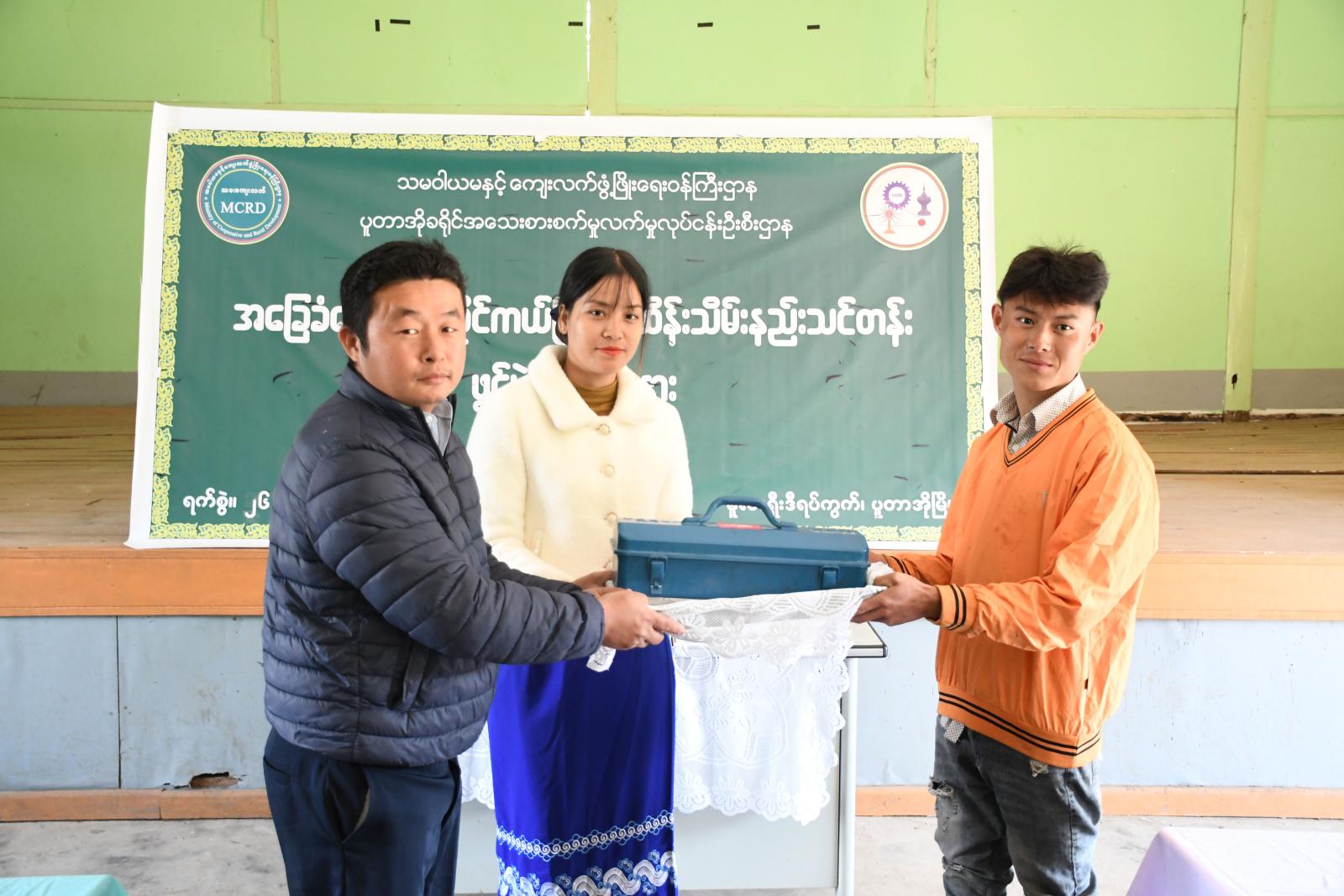 ဆက်လက်၍ မြို့နယ်သမဝါယမဦးစီးဌာနဦးစီးမှူး ဦးခေါ်ဒုဒီးဆားရ်က သင်တန်းတွင် အသုံးပြုမည့် သင်တန်းသုံးလုပ်ငန်းပစ္စည်းများအား သင်တန်းသားတစ်ဦးထံ လွှဲပြောင်းပေးအပ်ခဲ့ပြီး မြို့နယ်ရဝမ်စာပေနှင့် ယဉ်ကျေးမှုအသင်းဥက္ကဋ္ဌ ဦးမဖန်းဆင်ဆုန်းက သင်တန်းသားများအနေဖြင့် သင်တန်းမှသင်ကြားပေးသော နည်းပညာများအား ကြိုးစားသင်ယူလေ့လာကြရန် အားပေးစကား ပြောကြားသည်။