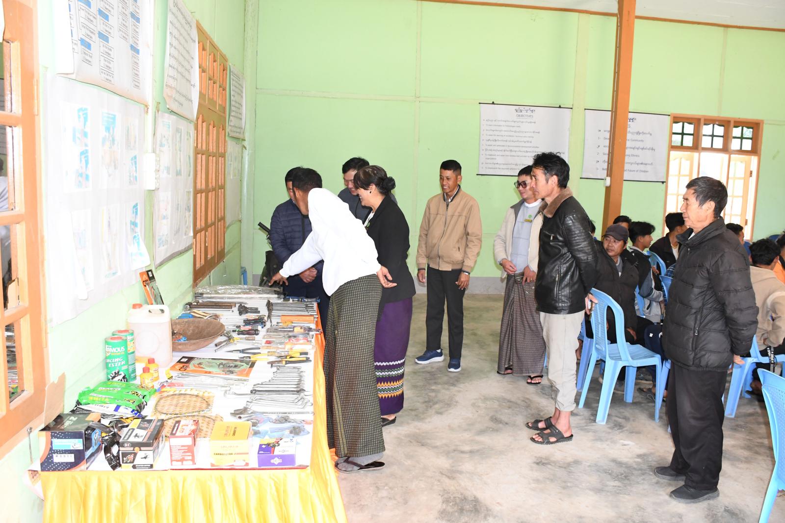 ထို့နောက် အခမ်းအနားတက်ရောက်လာသည့် ခရိုင်/မြို့နယ်အဆင့်ဌာနဆိုင်ရာများက သင်တန်းသုံး ကုန်ကြမ်းပစ္စည်းများ ခင်းကျင်းပြသထားရှိမှုများကို ကြည့်ရှုအားပေးပြီး အမှတ်တရ စုပေါင်းမှတ်တမ်းတင် ဓာတ်ပုံရိုက်ကူးခဲ့ကြသည်။