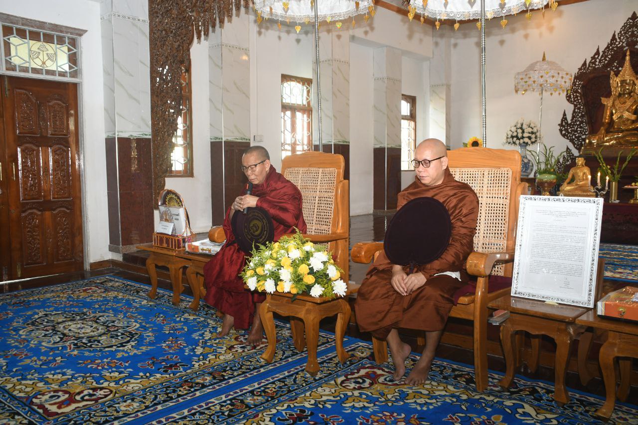 ဆက်လက်၍ ပြည်ထောင်စုဝန်ကြီးက ဘွဲ့တံဆိပ်တော်ရ ဆရာတော်အား လှူဖွယ်ပစ္စည်းများ၊ နဝကမ္မအလှူတော်ငွေများကိုလည်းကောင်း၊ ရန်ကုန်တိုင်း ဒေသကြီးအစိုးရအဖွဲ့ ဝန်ကြီးချုပ်က တိပိဋကမဟာဂန္ထဝင်နိကာယ်ကျောင်းတိုက် ပဓာနနာယက၊ တိပိဋကဓရ တိပိဋကကောဝိဒ၊ ဓမ္မဘဏ္ဍာဂါရိက၊ အဂ္ဂမဟာပဏ္ဍိတရေစကြိုဆရာတော် ဘဒ္ဒန္တဝါယာမိန္ဒာဘိဝံသအား လှူဖွယ်ပစ္စည်းများ၊ နဝကမ္မအလှူ တော်ငွေများကိုလည်းကောင်း ဆက်ကပ်လှူဒါန်းကြသည်။