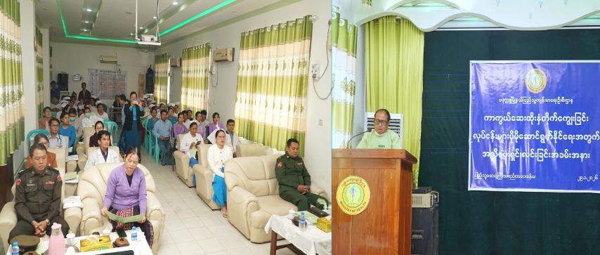 ဆက်လက်၍ မြို့နယ်ပြည်သူ့ကျန်းမာရေးဦးစီးဌာနမှ ဦးစီးအရာရှိ ဒေါ်တင်တင်ခိုင်က မြို့နယ်အဆင့် ပုံမှန်ကာကွယ် ဆေးထိုးနှံတိုက်ကျွေးခြင်းလုပ်ငန်းဆောင်ရွက်နေမှုများ၊ ဆက်လက်ဆောင်ရွက်မည့်လုပ်ငန်းစဉ်များနှင့် စပ်လျဉ်း၍ ရှင်းလင်းဆွေးနွေးရာ တက်ရောက်လာသည့် မြို့နယ်စီမံခန့်ခွဲရေးနှင့်အုပ်ချုပ်ရေးကော်မတီဥက္ကဋ္ဌနှင့် အဖွဲ့ဝင်များ၊ ဌာနဆိုင်ရာများ၊ ခရိုင်/မြို့နယ် ပြည်သူ့ကျန်းမာရေးဦးစီးဌာနမှ ဝန်ထမ်းများက ပြန်လည်ဆွေးနွေးခဲ့ကြကြောင်း သိရသည်။
