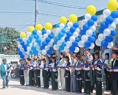 အဆိုပါကျောင်းဆောင်သစ်၊ စာကြည့်တိုက်သစ်အား ဖဲကြိုးဖြတ်ဖွင့်ပွဲကျင်းပရာ ခရိုင်စီမံခန့်ခွဲရေးနှင့် အုပ်ချုပ်ရေးကော်မတီဥက္ကဋ္ဌ ဦးညွှန့်နွယ်၊ ခရိုင်ပညာရေးမှူး ဒေါ်ဝင်းရည်မွန်၊ မြို့နယ်တာဝန်ရှိသူများ၊ ကျောင်းအုပ်ဆရာမကြီးနှင့် အလှူရှင်မိသားစုများက ဖဲကြိုးဖြတ်ဖွင့်လှစ်ခဲ့သည်။ ယင်းနောက် အလှူရှင်မိသားစုက ကျောင်းဆောင်သစ်နှင့် စာကြည့်တိုက်သစ်အား အမွှေးနံသာရည်များဖြင့် ပတ်ဖြန်းပြီး စုပေါင်မှတ်တမ်းတင် ဓာတ်ပုံရိုက်ကူးကြကြောင်းသိရသည်။ ဆက်လက်၍ အလှူရှင်မိသားစုက ရွှေမိုး၊ ငွေမိုးများ ရွာသွန်းပေးခဲ့ကြောင်း သိရသည်။