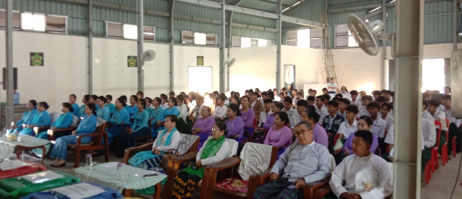 ရန်ကုန်တိုင်းဒေသကြီး၊ အင်းစိန်ခရိုင်၊ လှိုင်သာယာ (အရှေ့ပိုင်း) မြို့နယ်၊ အမျိုးသမီးရေးရာအဖွဲ့မှ ကြီးမှူးကျင်းပသော ပတ်၀န်းကျင်စိမ်းလန်းစိုပြေရေးနှင့် သန့်ရှင်းရေးဆိုင်ရာ အသိပညာပေးဟောပြောပွဲအခမ်းအနားကို ယမန်နေ့ နံနက် (၁၀) နာရီ၌ အမှတ် (၂) ရပ်ကွက်၊ အခြေခံပညာအထက်တန်းကျောင်း အမှတ် (၁) အားကစားခန်းမ၌ ကျင်းပသည်။