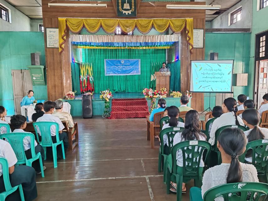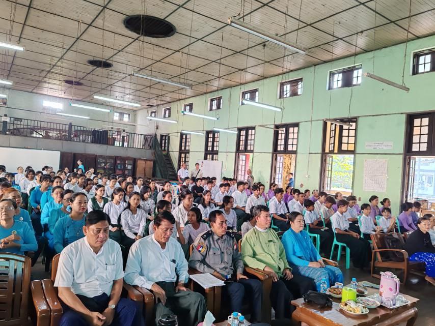 ရှေးဦးစွာ မြို့နယ်စီမံခန့်ခွဲရေးနှင့် အုပ်ချုပ်ရေးကော်မတီဥက္ကဋ္ဌ ဦးဇော်မိုးအောင်က အဖွင့်အမှာစကားပြောကြားခဲ့ပြီး မြို့နယ်အမျိုးသမီးရေးရာအဖွဲ့ဥက္ကဋ္ဌ ဒေါ်နှင်းနှင်းအေးက အသိပညာပေးဟောပြောပွဲနှင့် စပ်လျဉ်း၍ ရှင်းလင်းခဲ့သည်။ ဆက်လက်ပြီး မြို့နယ်ရဲတပ်ဖွဲ့မှူး ရဲမှူးချစ်ဆွေက လူကုန်ကူးမှုတိုက်ဖျက်ရေးဆိုင်ရာများကိုလည်းကောင်း၊ မြို့နယ်ဥပဒေအရာရှိ ဒေါ်မေဖြိုးခိုင်က အမျိုးသမီးများ အကြမ်းဖက်မှုနှင့် သက်ငယ်မုဒိန်းမှုများမှ ကာကွယ်နိုင်ရန်တို့ကိုလည်းကောင်း အသိပညာပေးဟောပြောခဲ့ကြပြီး ဟောပြောမှုအပေါ် ကျောင်းသား/ကျောင်းသူများအား ပြန်လည်ဆွေးနွေးမေးမြန်းခဲ့ပြီး ဖြေဆိုနိုင်သူများကို ဆုလက်ဆောင်များ ပေးအပ်ချီးမြှင့်ခဲ့သည်။