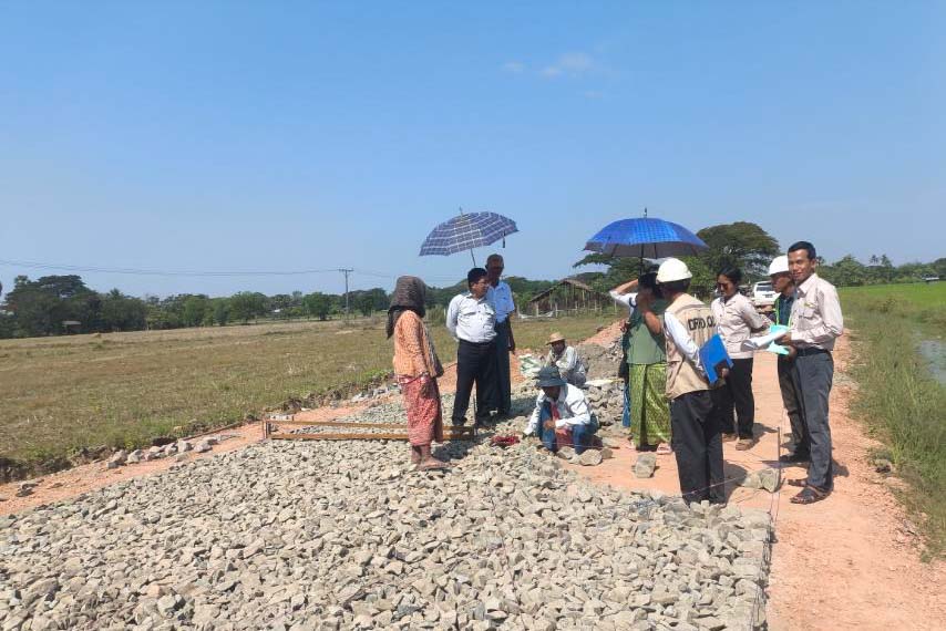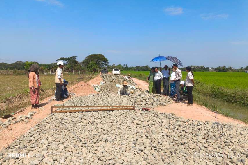 ရန်ကုန်တိုင်းဒေသကြီး၊ မှော်ဘီခရိုင်၊ ထန်းတပင်မြို့နယ် ကျေးလက်လမ်းဖွံ့ဖြိုးရေးဦးစီးဌာနမှ ၂၀၂၅-၂၀၂၆ ဘဏ္ဍာရေးနှစ် တိုင်းဒေသကြီးရန်ပုံငွေဖြင့် ရွှေဝါဝါမြင့်မိုရ်ကုမ္ပဏီမှ တာဝန်ယူဆောင်ရွက်လျက်ရှိသည့် ကျောက်တိုင်ဆိပ်-တရုတ်စုကျေးရွာချင်းဆက် ကျောက်ချောလမ်းခင်းခြင်းလုပ်ငန်းကို ဇန်နဝါရီ ၂၈ ရက်နေ့က တာဝန်ရှိသူများက ကွင်းဆင်းကြည့်ရှုစစ်ဆေးခဲ့ကြသည်။