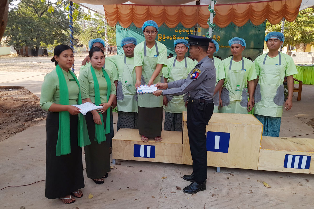 ယင်းနောက် ဆုပေးပွဲကိုဆက်လက် ကျင်းပရာ ပထမဆုကို စက်မှုအားမာန်အသင်း၊ ဒုတိယဆုကို ကုမုဒြာအသင်း၊ တတိယဆုကို ရဲဇာနည်အသင်းတို့က ရရှိခဲ့ကြပြီး၊ ပထမဆု ငွေကျပ် ၄ သိန်း၊ ဒုတိယဆု ငွေကျပ် ၃ သိန်း၊ တတိယဆု ငွေကျပ် ၂ သိန်းနှင့် ကျန် နှစ်သိမ့်ဆု ၉ ဆုအတွက် တစ်ဆုလျင် ငွေကျပ် တစ်သိန်း စီတို့ကို မြို့နယ်စီမံခန့်ခွဲရေးနှင့်အုပ်ချုပ်ရေးကော်မတီဥက္ကဋ္ဌနှင့် အဖွဲ့ဝင်များ၊ ဌာနဆိုင်ရာတာဝန်ရှိသူများက ပေးအပ်ချီးမြှင့်ခဲ့ကြပြီး အခမ်းအနားကို ရုပ်သိမ်းလိုက်သည်။ အဆိုပါအခမ်းအနားသို့ ဌာနဆိုင်ရာဝန်ထမ်းများ၊ကျောင်းသား/ကျောင်းသူများနှင့် ရပ်ကွက်ပြည်သူများ စုစုပေါင်းအင်အား ၈၅၀ ဦးခန့် တက်ရောက်ခဲ့ကြကြောင်း သိရသည်။