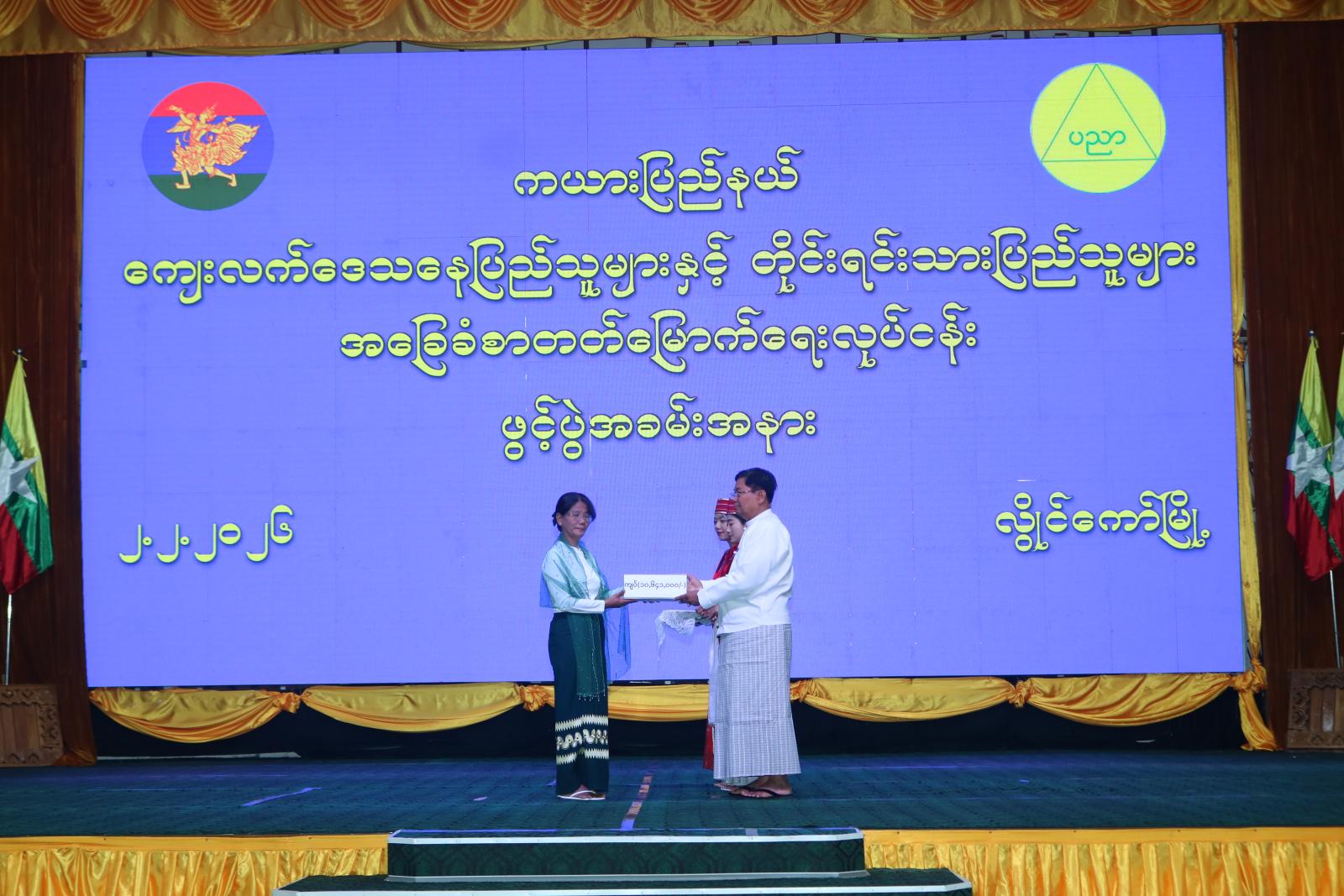 ထို့နောက် ပြည်နယ်ဝန်ကြီးချုပ်က ကယားပြည်နယ် အခြေခံစာတတ်မြောက်ရေးလုပ်ငန်း အတွက် ချီးမြှင့်ငွေများကို ပြည်နယ်ပညာရေးမှူးထံသို့လည်းကောင်း၊ စာရေးကိရိယာနှင့်သင်ထောက်ကူပစ္စည်းများကို ဒုတိယညွှန်ကြားရေးမှူးထံသို့လည်းကောင်းပေးအပ်ခဲ့သည်။