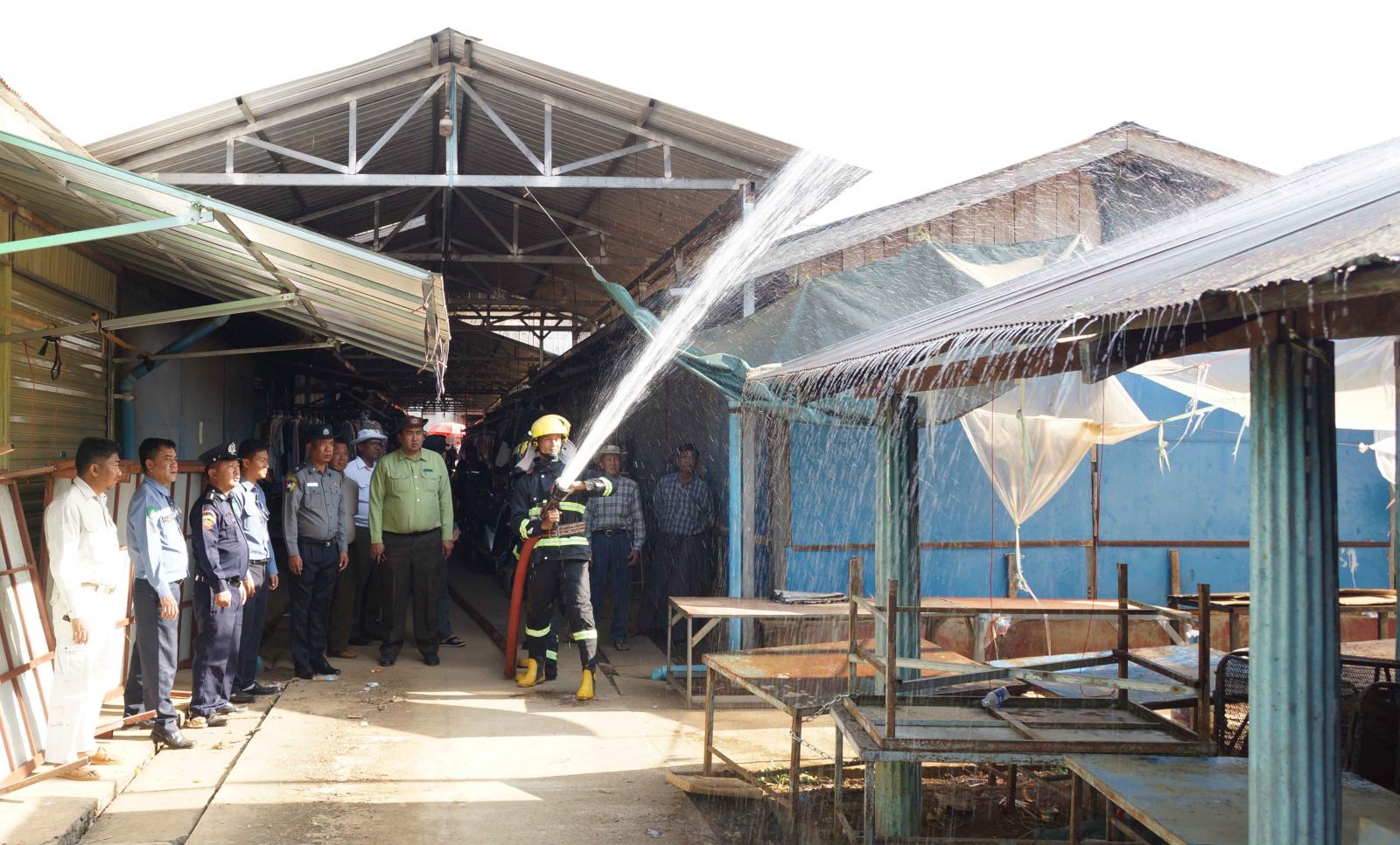 ထိုသို့ ဆောင်ရွက်ရာတွင် မြို့နယ်အတွင်းရှိ မီးဘေးလုံခြုံရေးနှင့်စပ်လျဉ်း၍ မိမိကွပ်ကဲမှုအောက်ရှိ မြို့နယ်ဒေသအတွင်း မီးလောင်မှုများမဖြစ်ပေါ်စေရေးနှင့် မီးဘေးအန္တရာယ်ကြိုတင်ကာကွယ်ရေးလုပ်ငန်းများကို လုပ်ငန်းစဉ် (၇)ရပ်နှင့်အညီ စက်ရုံ၊ အလုပ်ရုံ၊ စက်သုံးဆီဆိုင်၊ ဆေးဆိုင်များနှင့် ရပ်ကွက်များရှိ ကုန်စုံဈေးဆိုင်များ မီးလောင်မှုမဖြစ်ပေါ်စေရန် မြန်မာနိုင်ငံမီးသတ်တပ်ဖွဲ့ဉပဒေ၊ နည်းဉပဒေများ၊ မီးဘေးလုံခြုံရေး ကြိုတင်ကာကွယ်ရေးဆိုင်ရာ အကြံပြုချက်များအား လိုက်နာဆောင်ရွက်ရေးအသိပညာပေးခြင်းများ ဆောင်ရွက်ခဲ့ပြီး မြို့နယ်အုပ်ချုပ်ရေးမှူး ဦးအောင်ဇင်ဦး၊ မြို့နယ်မီးသတ်ဦးစီးမှူး ဦးဇော်မော်၊ မြို့နယ်စည်ပင်သာယာရေးဌာန အမှုဆောင်အရာရှိ ဦးကျော်စိုးလွင်၊ မြို့မစည်ပင်သာယာရေးအထောက်အကူပြုအဖွဲ့၊ မြို့မဈေးကော်မတီဝင်များနှင့် မီးသတ်တပ်ဖွဲ့ဝင်များတို့မှ ဈေးအတွင်းရှိ မီးသတ်ဆေးဘူးများစစ်ဆေးခြင်း၊ မီးသတ်ယာဉ်၊ မီးသတ်ဆေးဘူးများဖြင့် မီးငြှိမ်းသတ်ခြင်း လက်တွေ့သရုပ်ပြသကာ မြို့နယ်စည်ပင်သာယာရေးဝန်ထမ်းများနှင့် ဈေးသူ၊ ဈေးသားများအား လက်တွေ့မီးငြှိမ်းသတ်ခြင်းများ ဆောင်ရွက်ခဲ့ပြီး မြို့မဈေးအတွင်း မီးဘေးလုံခြုံရေးနှင့် ကြိုတင်ကာကွယ်ရေးဆိုင်ရာ လုပ်ငန်းများဆောင်ရွက်ရန် တာဝန်ရှိသူများက ပေါင်းစပ်ညှိနှိုင်း ဆွေးနွေးခဲ့ကြကြောင်း သိရသည်။