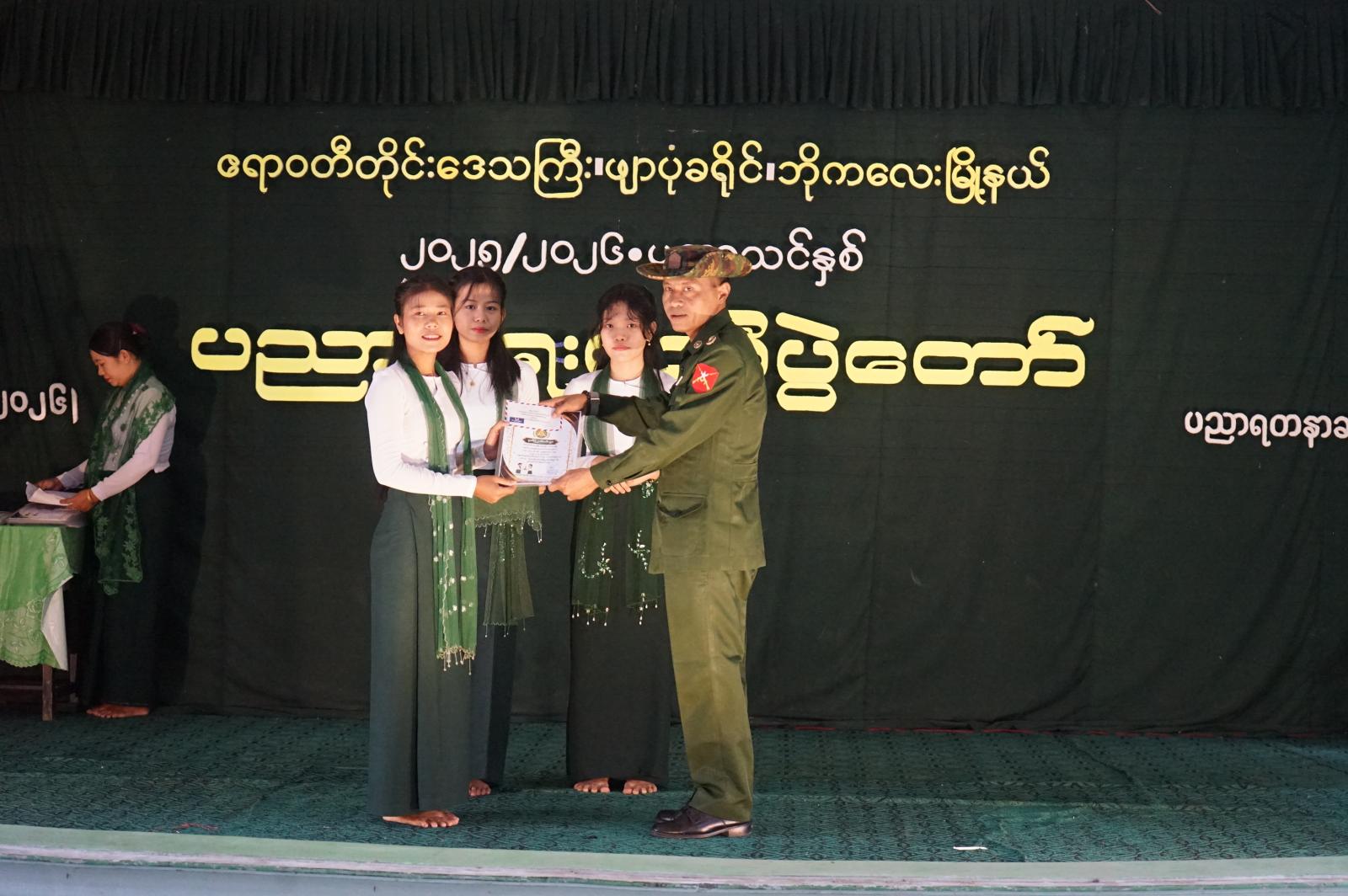 ဆက်လက်၍ တာဝန်ရှိသူများက ၂၀၂၅-၂၀၂၆ ပညာသင်နှစ်အတွင်း တိုင်း၊ ခရိုင်၊ မြို့နယ်အဆင့် ကဏ္ဍပေါင်းစုံ၌ ထူးချွန်ခဲ့ကြသော ကျောင်းသား/သူများအား ပညာရည်ချွန်ဆုများချီးမြှင့် ပေးအပ်ခဲ့ပြီး အခြေခံပညာကျောင်းပေါင်းစုံမှ ကျောင်းသား/သူများကလည်း ဖျော်ဖြေရေးကဏ္ဍများဖြင့် တင်ဆက်ခဲ့ကြကြောင်းသိရသည်။