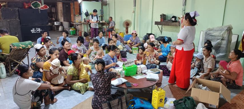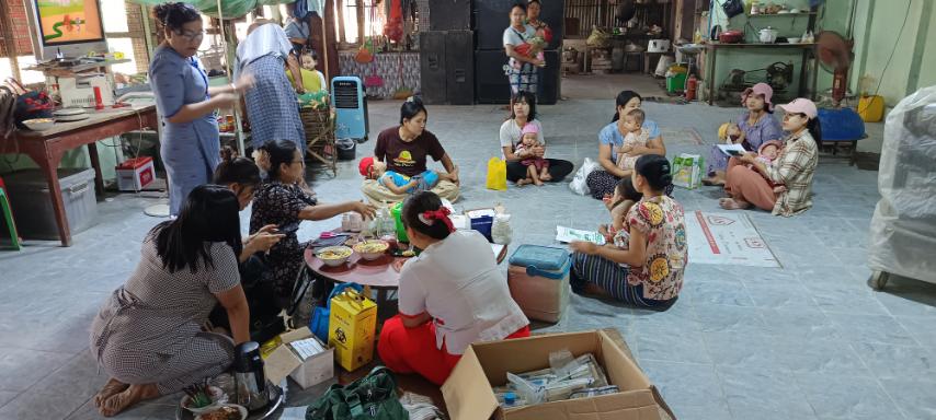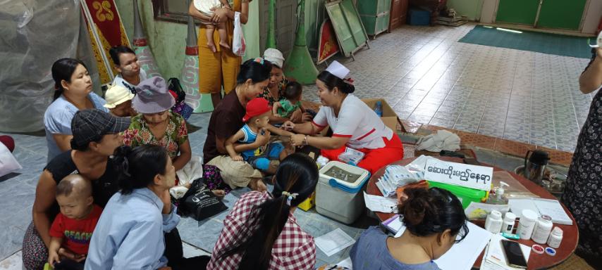 ရန်ကုန်တိုင်းဒေသကြီး၊ အင်းစိန်ခရိုင်၊ လှိုင်သာယာ (အရှေ့ပိုင်း) မြို့နယ်တွင် အသက် (၂) နှစ်အောက် ကလေးငယ်များနှင့် ကိုယ်ဝန်ဆောင်မိခင်များအား ပုံမှန်ကာကွယ်ဆေးထိုးနှံပေးခြင်းကို ယနေ့နံနက် (၁၀) နာရီ၌ ကစင်ကျေးရွာ၊ ဉာဏ်ချောင်ကျေးရွာ ခရေ (၆) လမ်းရှိ စိန်ပိန်းမြိုင်ဓမ္မာရုံတွင် ကွင်းဆင်းထိုးနှံပေးလျက်ရှိသည်။