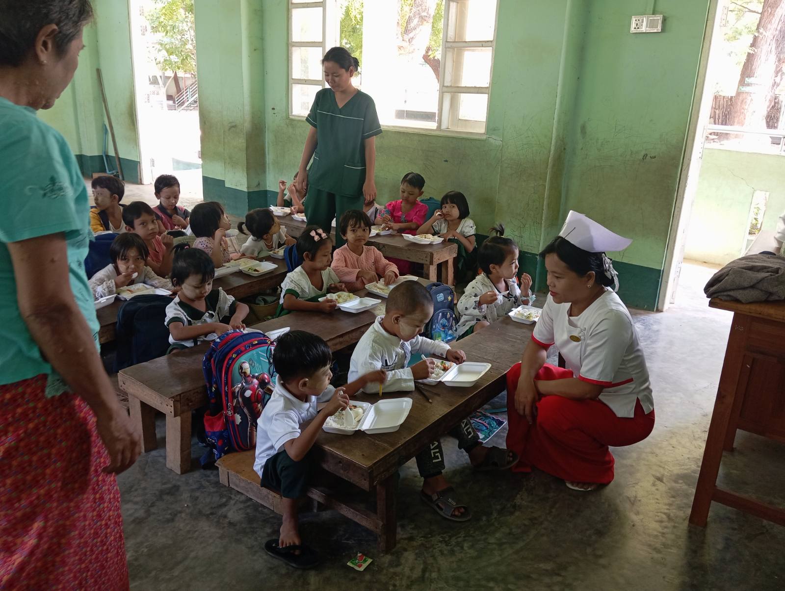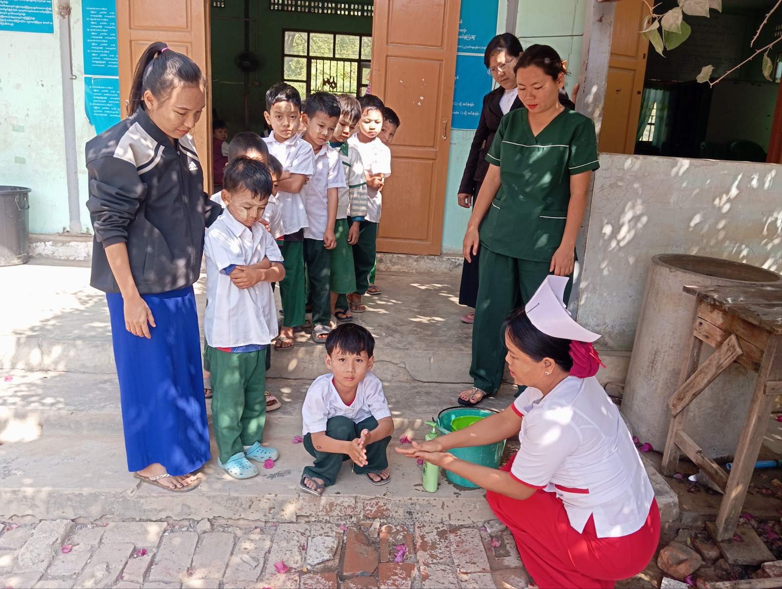 ရှေးဦးစွာ မြို့နယ်မိခင်နှင့်ကလေးစောင့်ရှောက်ရေးဆေးခန်းမှ သွားဖွားဆရာမ ကျောင်းကျန်းမာရေး ဆရာမဒေါ်ဇာဇာဝင်းက ကျောင်းသား၊ ကျောင်းသူလေးများအား တစ်ကိုယ်ရေသန့်ရှင်းရေးအကြောင်းများ ရှင်းလင်းဟောပြောခဲ့ပြီး စနစ်တကျလက်ဆေးနည်းများကို လက်တွေ့လုပ်ဆောင်စေခဲ့ ပြီး ကျောင်းအုပ်ဆရာမကြီး ဒေါ်နှင်းနှင်းခိုင်နှင့်ဆရာ/ဆရာမများနှင့်အတူ ကြက်ဥ၊ ရွှေဖရုံ၊ ပဲဝါလေးဟင်းများနှင့် အာဟာရထမင်းများ၊ ငှက်ပျောသီးများ ကျွေးမွေးခဲ့ကြောင်း သိရသည်။