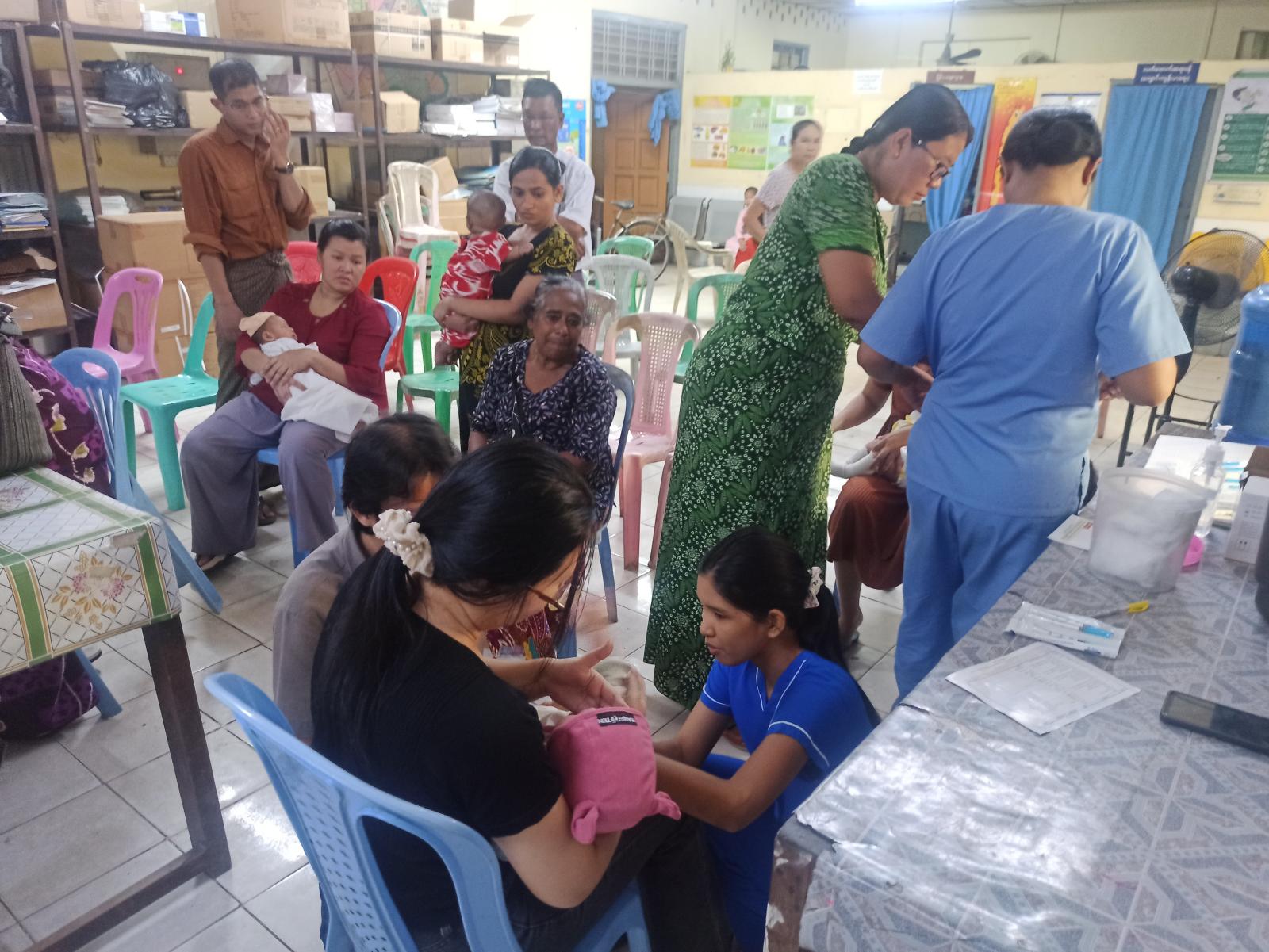 ရန်ကုန်တိုင်းဒေသကြီး သင်္ဃန်းကျွန်းမြို့နယ် မြို့နယ်ပြည်သူ့ကျန်းမာရေးဦးစီးဌာနတွင် မွေးကင်းစမှ အသက်၁နှစ်ခွဲအရွယ်အပိုင်းအခြားထိ ပုံမှန်ကာကွယ်ဆေး ထိုးနှံတိုက်ကျွေးခြင်းအား ဖေဖော်ဝါရီ ၄ ရက်နေ့ နံနက်ပိုင်းက စတင်၍ ကျန်းမာရေးဦးစီးဌာနဝန်ထမ်းများက စနစ်တကျမေးမြန်းဆွေးနွေးပြီး ဂရုတစိုက်ထိုးနှံ တိုက်ကျွေးပေးလျက်ရှိသည်။