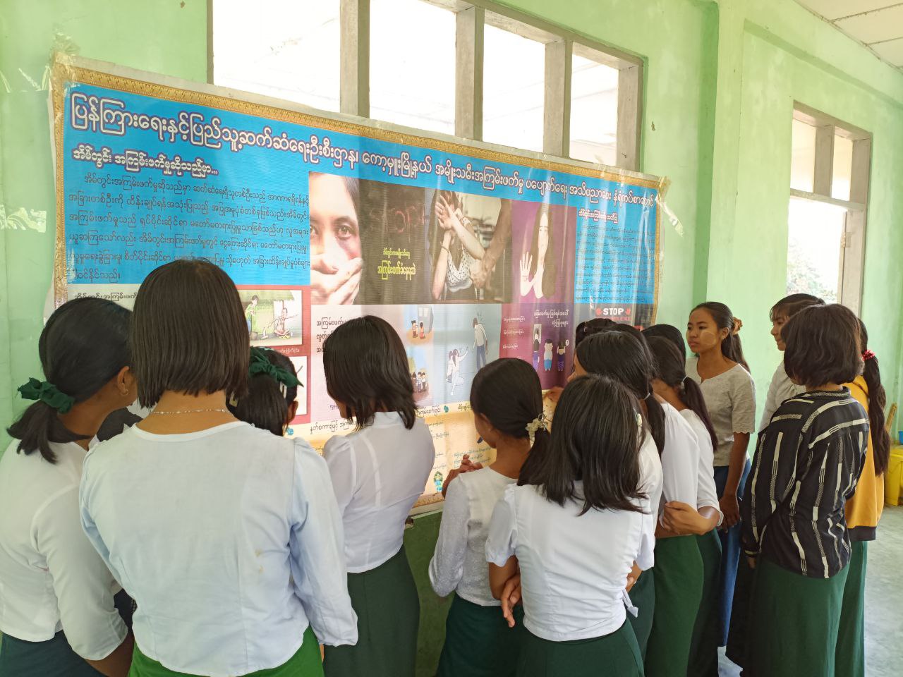 ထို့နောက် ပြန်ကြားရေးနှင့်ပြည်သူ့ဆက်ဆံရေးဦးစီးဌာနမှ ပြသထားသော လူကုန်ကူးမှုတားဆီးကာကွယ်ရေး အသိပညာပေးနံရံကပ်စာစောင်နှင့် သုတ၊ ရသစာအုပ်စာစောင်များကို ကျောင်းသား၊ ကျောင်းသူများက စိတ်ပါဝင်စားစွာဖြင့် ကြည့်ရှုလေ့လာနေကြကြောင်း သိရသည်။