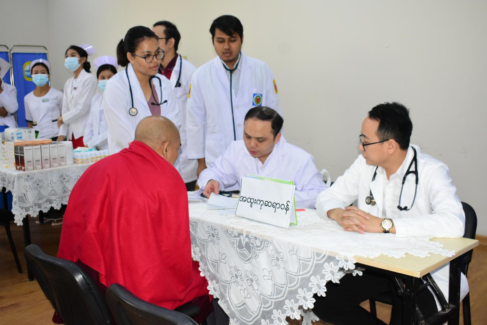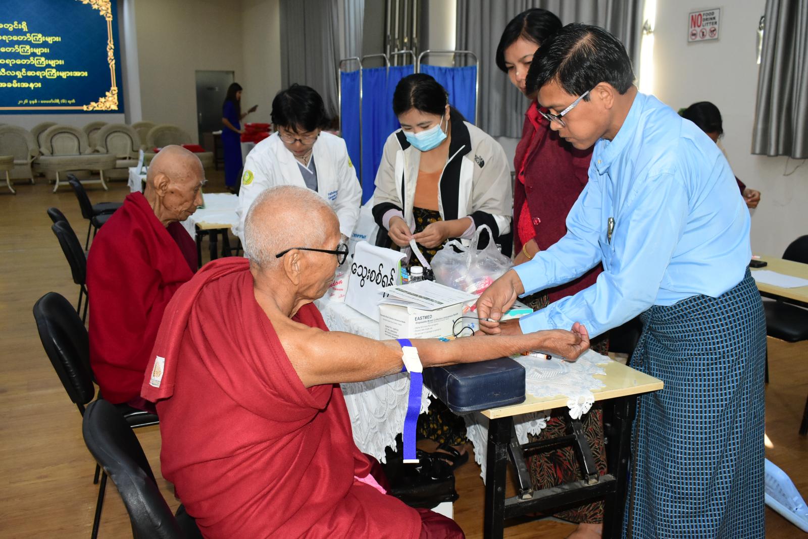 ကျန်းမာရေးစစ်ဆေးခြင်းကို မန္တလေးပြည်သူ့ဆေးရုံကြီး၊ ဆေးကုသဆောင်(၃)မှ ပါမောက္ခချစ်သက်အောင် ဦးဆောင်ကာ ပါမောက္ခ၊ အထူးကုဆရာဝန်ကြီးများ၊ လက်ထောက်ဆရာဝန်များနှင့် သူနာပြုများက ဆရာတော်ကြီးများ၊ သီလရှင်ကြီးများ စုစုပေါင်း ၂၄ ပါးအား သွေးပေါင် ချိန်ခြင်း၊ ဓာတ်မှန်ရိုက်ခြင်း၊ သွေးစစ်ခြင်း၊ အာထရာဆောင်းရိုက်ခြင်း၊ အထွေထွေကျန်းမာရေး စစ်ဆေးခြင်းများ ဆောင်ရွက်ပေးခဲ့သည်။