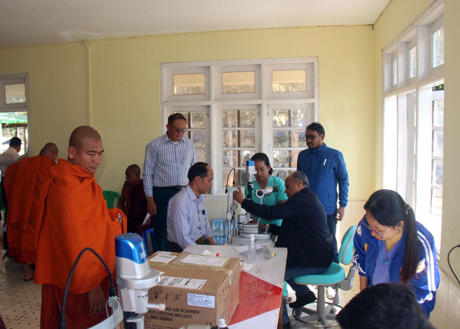 မြို့နယ်ပြည်သူ့ဆေးရုံတွင် တောင်ငူမြို့မှ မျက်စိသမားတော်များ ၊ မျက်စိအထူးကုဆရာဝန်များ၊ သူနာပြုနှင့် သက်ဆိုင်ရာတာဝန်ရှိသူများပါဝင်သော အဖွဲ့က မျက်စိဝေဒနာရှင်ပြည်သူများကို အခမဲ့ စမ်းသပ်စစ်ဆေးပေး၍ ခွဲစိတ်ရန်လိုအပ်သူများကို ခွဲစိတ်ကုသပေးခြင်းတို့ကို ဆောင်ရွက်ပေးလျက်ရှိပြီး နမ့်စန်တပ်နယ်မှူး ဗိုလ်မှူးချုပ် စွမ်းလှိုင်မင်း၊ မြို့နယ်စီမံခန့်ခွဲရေးနှင့်အုပ်ချုပ်ရေးကော်မတီဥက္ကဋ္ဌ ဦးနေမျိုးထွန်းနှင့် မြို့နယ်ဆရာဝန်ကြီး ဒေါက်တာမျိုးမင်းခိုင်တို့က ဦးဆောင်၍ မြို့မိမြို့ဖများ၊ဌာနဆိုင်ရာအကြီးအကဲများ၊ ကြက်ခြေနီတပ်ဖွဲ့၊ လူမှုကူညီရေးအသင်းများ၊ သာသနာရေးဆိုင်ရာအသင်းများ၊ ပြည်သူ့ဆေးရုံနှင့်ပုဂ္ဂလိကဆေးရုံမှ တာဝန်ရှိသူများက မျက်စိဝေဒနာရှင်ရဟန်းသံဃာ၊ သီလရှင်နှင့် ပြည်သူများ အဆင်ပြေချောမွေ့စွာ စမ်းသပ်ကုသခံနိုင်ရန်အတွက် နေထိုင်သွားလာရေးများ၊ အကြို/အပို့ကိစ္စရပ်များ ၊ ဝေယျာဝစ္စ ကိစ္စရပ်များနှင့် အခြားလိုအပ်သည်များကို ကူညီဆောင်ရွက်ပေးလျက်ရှိသည်။