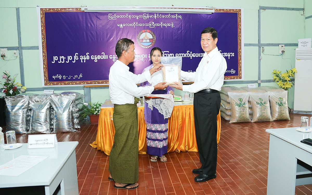 ဆက်လက်၍ တိုင်းဒေသကြီးဝန်ကြီးချုပ်၊ အစိုးရအဖွဲ့ဝင်ဝန်ကြီးများနှင့် တာဝန်ရှိသူများက စပါးသီးနှံ ဧက ၁၀၀၀ အတွက် စပါးမျိုးစေ့အိတ်များ၊ ဝါသီးနှံ ဧက ၅၀၀ အတွက် ဝါမျိုးစေ့အိတ်များ၊ နှမ်းသီးနှံ ဧက ၂၀၀ အတွက် နှမ်းမျိုးစေ့အိတ်များ၊ ကော်ဖီသီးနှံ ဧက ၃၀ အတွက် ကော်ဖီမျိုးစေ့ အိတ်များ၊ ပိုက်ဆံလျှော် ဧက ၁၀၀၀ အတွက် ပိုက်ဆံလျှော်မျိုးစေ့အိတ်များ၊ စိုက်ပျိုး သီးနှံဧက ၁၀၀၀ အတွက် သွင်းအားစု မြေဩဇာအိတ်များကို တောင်သူများထံ ပေးအပ်ခဲ့ပြီး တောင်သူတစ်ဦးက ကျေးဇူးတင်စကား ပြောကြားခဲ့သည်။