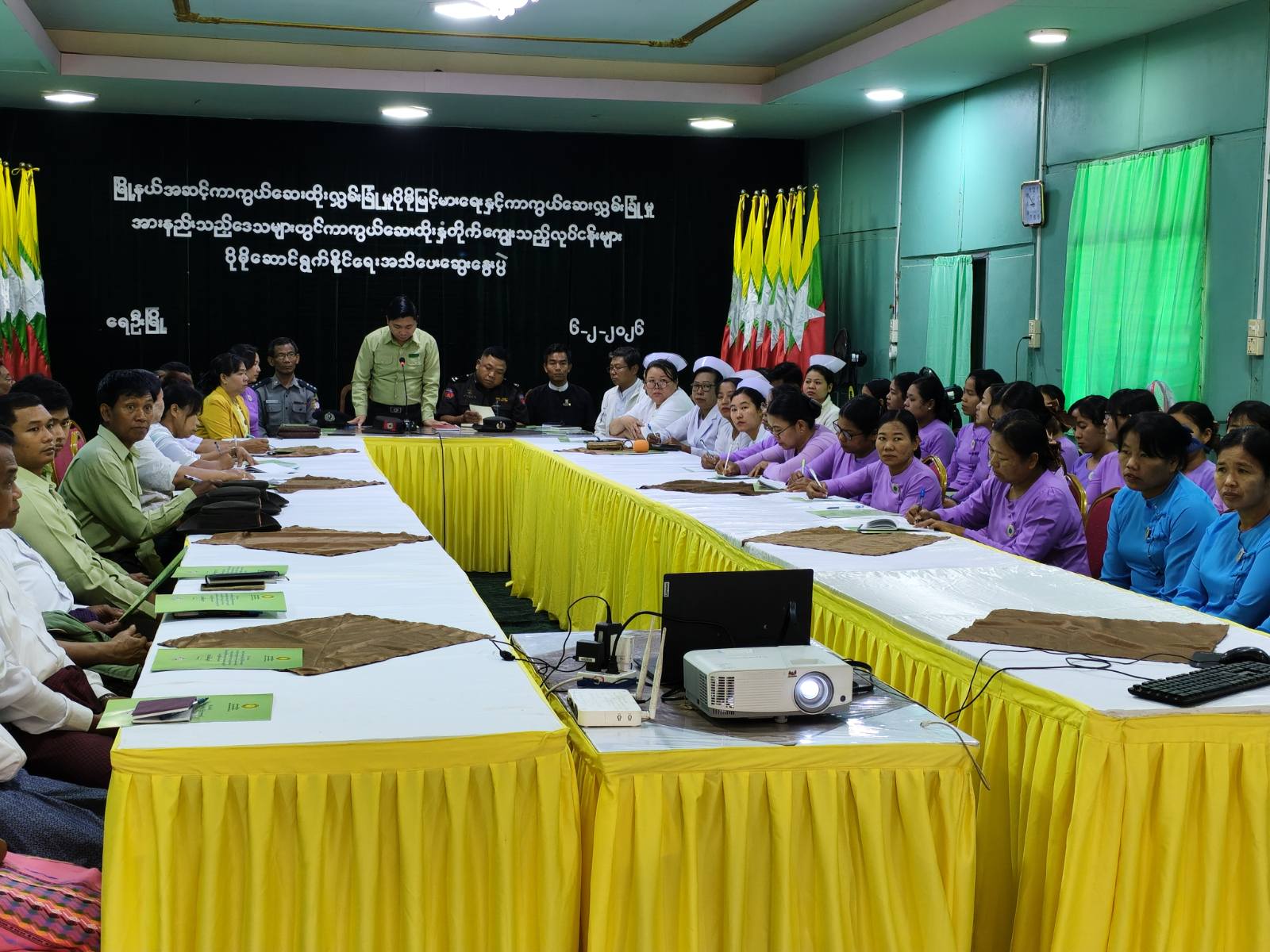 စစ်ကိုင်းတိုင်းဒေသကြီး ရေဦးခရိုင်၊ ရေဦးမြို့နယ် ပြည်သူ့ကျန်းမာရေးဦးစီးဌာနအစီအစဉ်ဖြင့် အထွေထွေအုပ်ချုပ်ရေးဦးစီးဌာန ရွှေနဒီဦးခန်းမတွင် ယနေ့နံနက် ၉ နာရီက မြို့နယ်အဆင့် ကာကွယ်ဆေးထိုးလွှမ်းခြုံမှု ပိုမိုမြင့်မားစေရေးနှင့် ကာကွယ်ဆေးလွှမ်းခြုံမှုအားနည်းသည့်ဒေသများတွင် ကာကွယ်ဆေးထိုးနှံတိုက်ကျွေးသည့်လုပ်ငန်းများ ပိုမိုဆောင်ရွက်နိုင်ရေး အသိပေးဆွေးနွေးပွဲပြုလုပ်ခဲ့ကြောင်း သိရသည်။