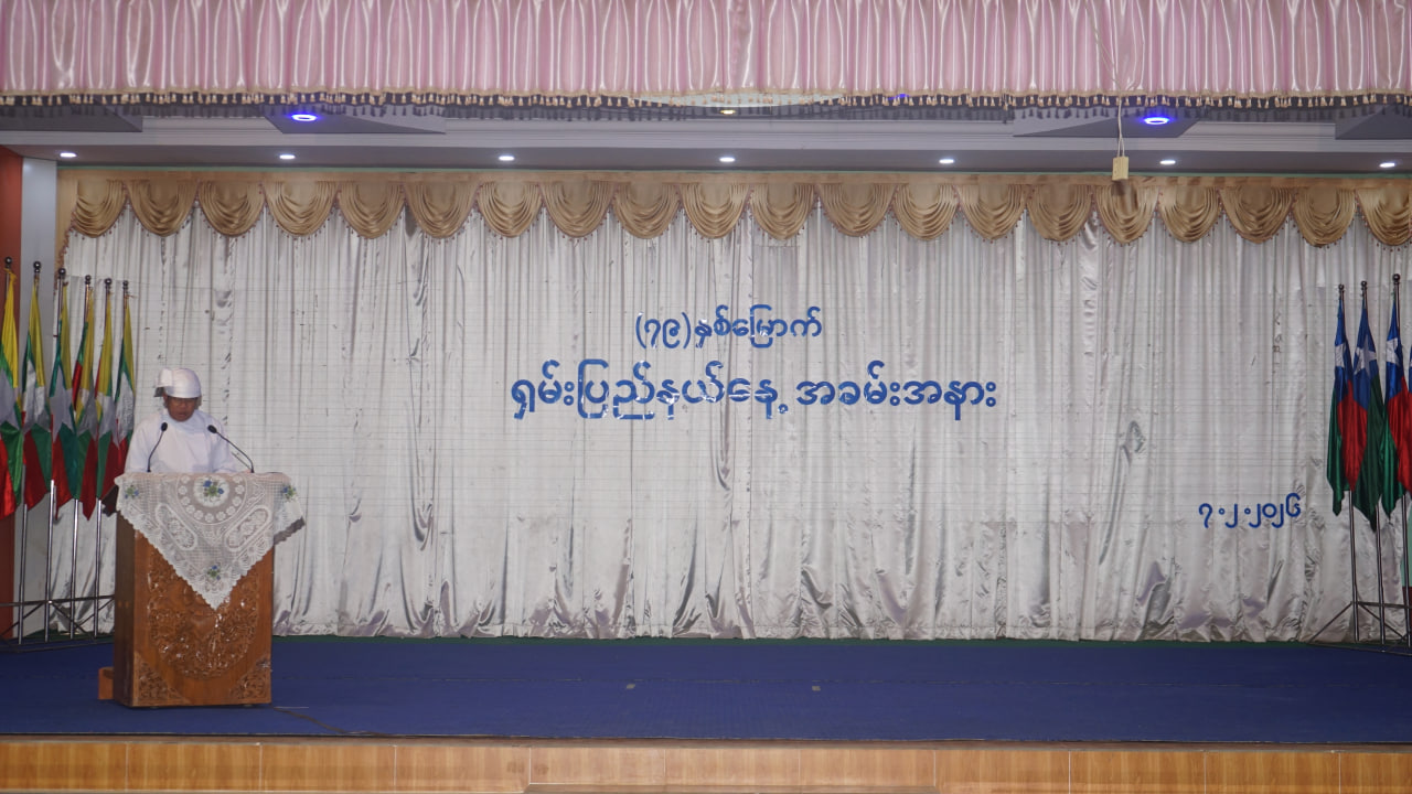 အခမ်းအနားတွင် ပြည်ထောင်စုသမ္မတမြန်မာနိုင်ငံတော် ယာယီသမ္မတ နိုင်ငံတော်လုံခြုံရေးနှင့် အေးချမ်းသာယာရေးကော်မရှင်ဥက္ကဋ္ဌ ဗိုလ်ချုပ်မှူးကြီး သတိုးမဟာသရေစည်သူ သတိုးသီရိသုဓမ္မ မင်းအောင်လှိုင်ထံမှ ၂၀၂၆ ခုနှစ်၊ (၇၉)နှစ်မြောက် ရှမ်းပြည်နယ်နေ့ အခမ်းအနားသို့ပေးပို့သည့် သဝဏ်လွှာအား ပအိုဝ်းကိုယ်ပိုင်အုပ်ချုပ်ခွင့်ရဒေသစီမံအုပ်ချုပ်ရေးအဖွဲ့ အတွင်းရေးမှူး ဦးမျိုးအောင်က ဖတ်ကြားပြီးနောက် (၇၉)နှစ်မြောက် ရှမ်းပြည်နယ်နေ့ အခမ်းအနားသို့ ရှမ်းပြည်နယ်ဝန်ကြီးချုပ် ဇေယျကျော်ထင်စည်သူ ဦးအောင်အောင်မှ ပေးပို့သည့် သဝဏ်လွှာအား ပအိုဝ်းကိုယ်ပိုင်အုပ်ချုပ်ခွင့်ရဒေသ စီမံအုပ်ချုပ်ရေးအဖွဲ့ အဖွဲ့ဝင် ဒုတိယဗိုလ်မှူးကြီး ညီညီတင်က ဖတ်ကြားသည်။