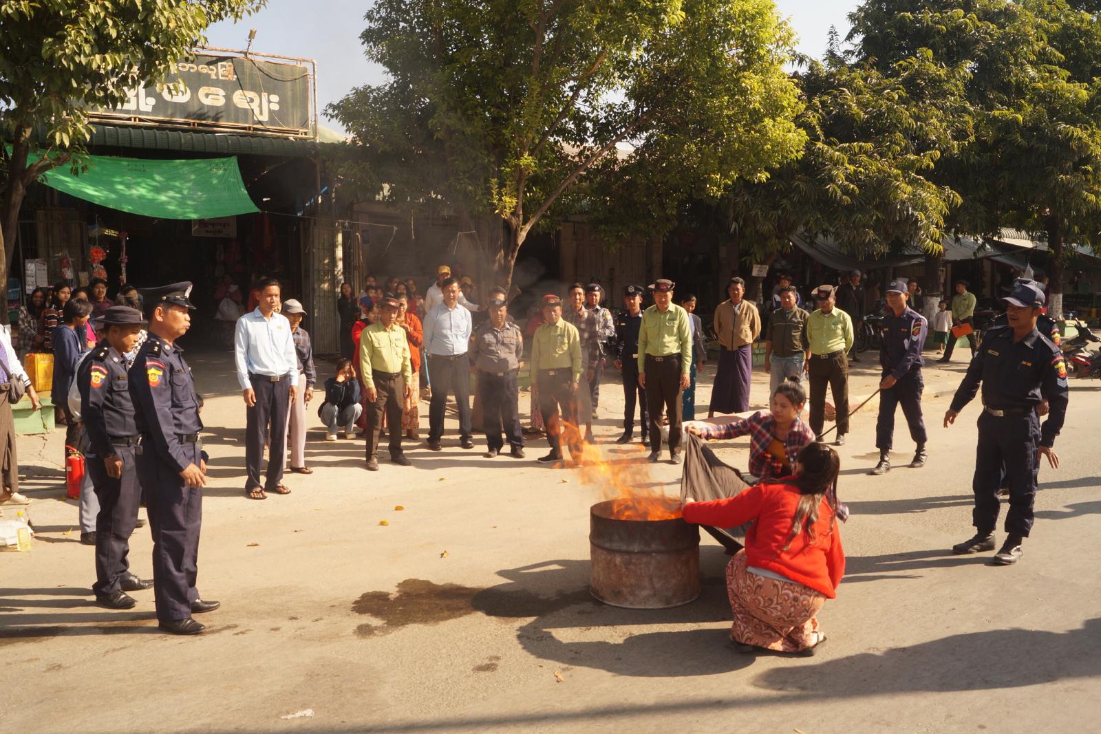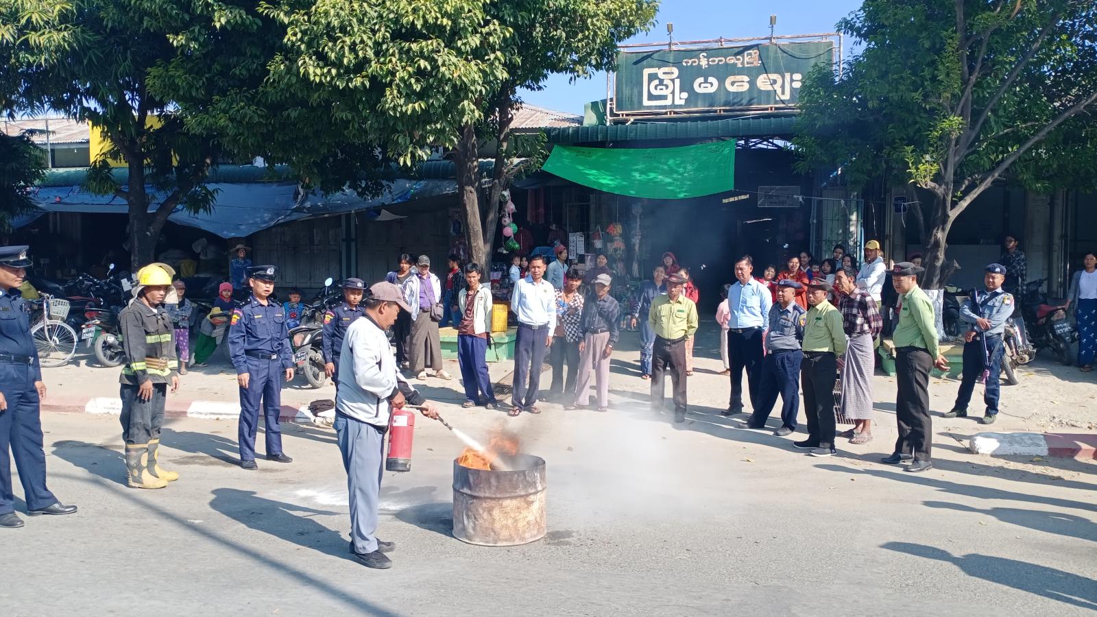 ထိုသို့ ပြုလုပ်ရာတွင် ခရိုင်မီးသတ်ဦးစီးမှူးက မီးဘေးလုံခြုံရေးဆိုင်ရာများကို အသိပညာပေးဟောပြောခြင်း၊ မြို့နယ်မီးသတ်ဦးစီးဌာန ဒုတိယဦးစီးမှူး ဦးဆောင်၍ မီးသတ်တပ်ဖွဲ့ဝင်များက စျေးတာဝန်ရှိသူများနှင့် စျေးသူစျေးသားများအား မီးသတ်ဆေးဘူးဖြင့် လက်တွေ့ကိုင်တွယ်မီးငြှိမ်းသတ်ခြင်းအား သရုပ်ပြသခြင်း၊ ဆီမီးလောင်မှုကို ရေစိုအဝတ်ဖြင့် မီးငြှိမ်းသတ်ခြင်းများကိုပြသ၍ ကိုယ်တိုင်ပါဝင်ဆောင်ရွက်စေခြင်းနှင့် မီးငြှိမ်းသတ်ယာဥ်ဖြင့် မီးဘေးကြိုတင်ကာကွယ်ရေးအတွက် လက်တွေ့မီးငြှိမ်းသတ်ခြင်းတို့ကို ဆောင်ရွက်ခဲ့ကြသည်။