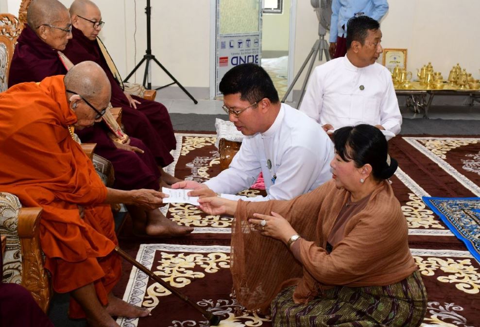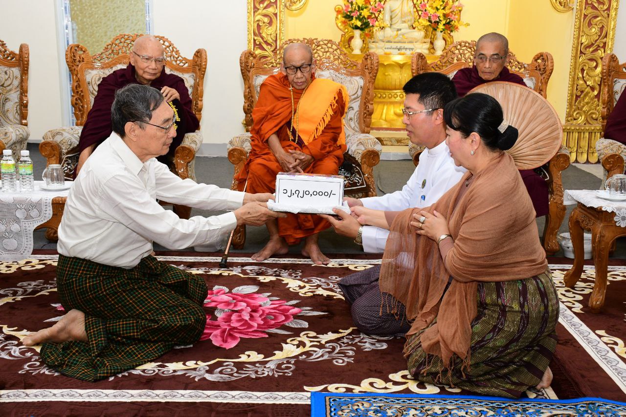ထိုသို့ ကျင်းပရာတွင် တိုင်းဒေသကြီးဝန်ကြီးချုပ်နှင့် ဇနီးတို့သည် အစိုးရအဖွဲ့ဝင်ဝန်ကြီးများနှင့် ၎င်းတို့၏ဇနီးများ၊ တာဝန်ရှိသူများနှင့်အတူ တက်ရောက်ခဲ့ပြီး ဦးစွာ “နမောတဿ” (၃) ကြိမ်ရွတ်ဆို ဘုရားကန်တော့၍ အခမ်းအနားဖွင့်လှစ်ခဲ့ပြီး နိုင်ငံတော်ဩဝါဒါစရိယ၊ ပုသိမ်မြို့၊ ညောင်ပင်သာပရိယတ္တိစာသင်တိုက် ဦးစီးပဓာနနာယက ဆရာတော် (အဘိဓဇမဟာရဋ္ဌဂုရု၊ အဂ္ဂမဟာပဏ္ဍိတ၊ အဘိဓဇအဂ္ဂမဟာသဒ္ဓမ္မဇောတိက)ဘဒ္ဒန္တဝိဿုတ မဟာထေရ်အရှင်သူမြတ်ထံမှ တိုင်းဒေသကြီးဝန်ကြီးချုပ်နှင့် ဧည့်ပရိသတ်များက ငါးပါးသီလခံယူဆောက်တည်ခဲ့ကြပြီး ဆရာတော်သံဃာတော်အရှင်သူမြတ်များက ပရိတ်တရားတော်များ ရွတ်ပွားချီးမြှင့်တော်မူသော ပရိတ်တရားတော်များ ဆက်လက်နာယူကြည်ညိုခဲ့ကြကာ ဆရာတော်အရှင်သူမြတ်များအား နဝကမ္မအလှူငွေများ ဆက်ကပ်လှူဒါန်းခဲ့သည်။ ယင်းနောက် တိုင်းဒေသကြီးဝန်ကြီးချုပ်နှင့် ဇနီးမိသားစုက (၇၁)ကြိမ်မြောက် သုဓမ္မာဝိနယာဓိကစာမေးပွဲတွင် အောင်မြင်တော်မူခဲ့ကြသော ဓမ္မာစရိယနှင့် ပါဠိပထမပြန်စာမေးပွဲ စာအောင် အရှင်သူမြတ်များ၊ သာသနာ့နွယ်ဝင်သီလရှင်၊ လူပုဂ္ဂိုလ်တို့အတွက် အလှူတော်ငွေများပေးအပ်လှူဒါန်းရာ သုဓမ္မာဝိနယာဓိက အကျိုးတော်ဆောင်က လက်ခံရယူခဲ့ပြီး ဂုဏ်ပြုမှတ်တမ်းလွှာ ပြန်လည်ပေးအပ်ခဲ့သည်။