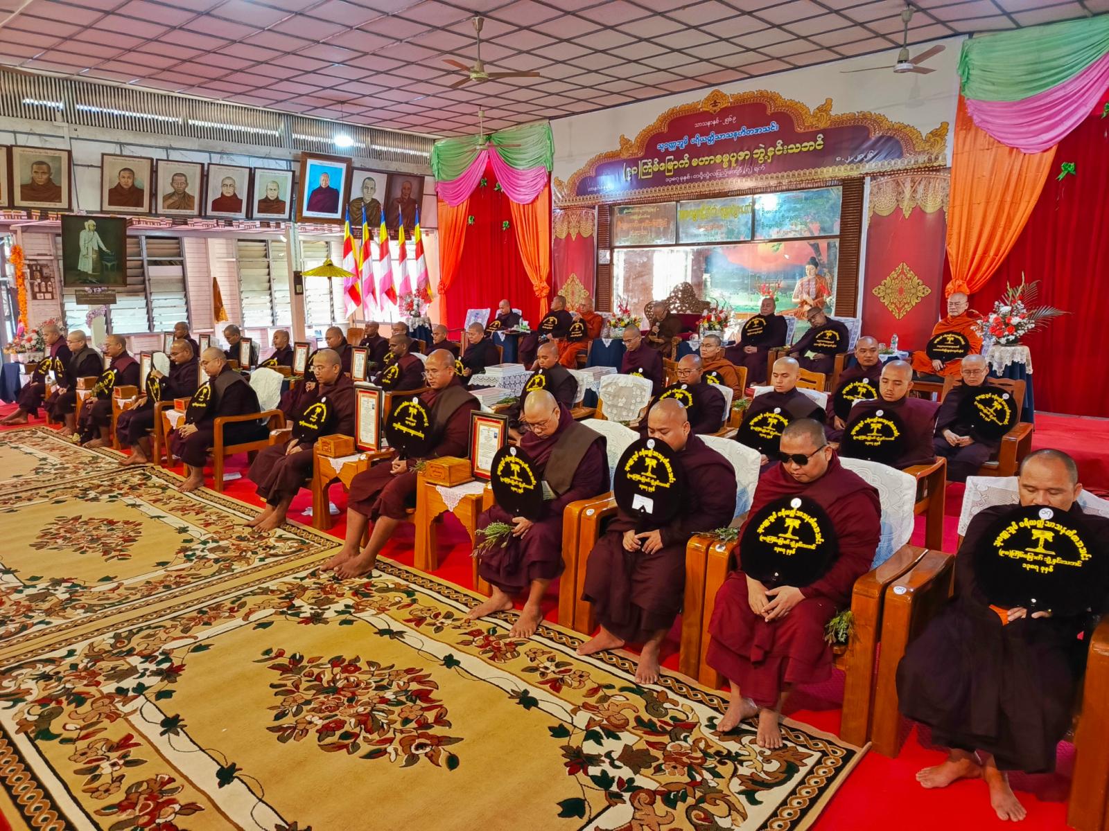 မွန်ပြည်နယ်၊ သထုံမြို့၊ ပရိယတ္တိသာသနဟိတအသင်းကြီး၏ (၉၈)ကြိမ်မြောက် မဟာဓမ္မပူဇာ ဘွဲ့နှင်းသဘင်အခမ်းအနားကို ယနေ့နံနက်က မြသပိတ်တောင်ခြေ၊ သဒ္ဓမ္မဇောတိကာရာမ ကျောင်းတိုက်အတွင်းရှိ ဘွဲ့နှင်းဓမ္မာရုံ၌ ကျင်းပပြုလုပ်သည်။