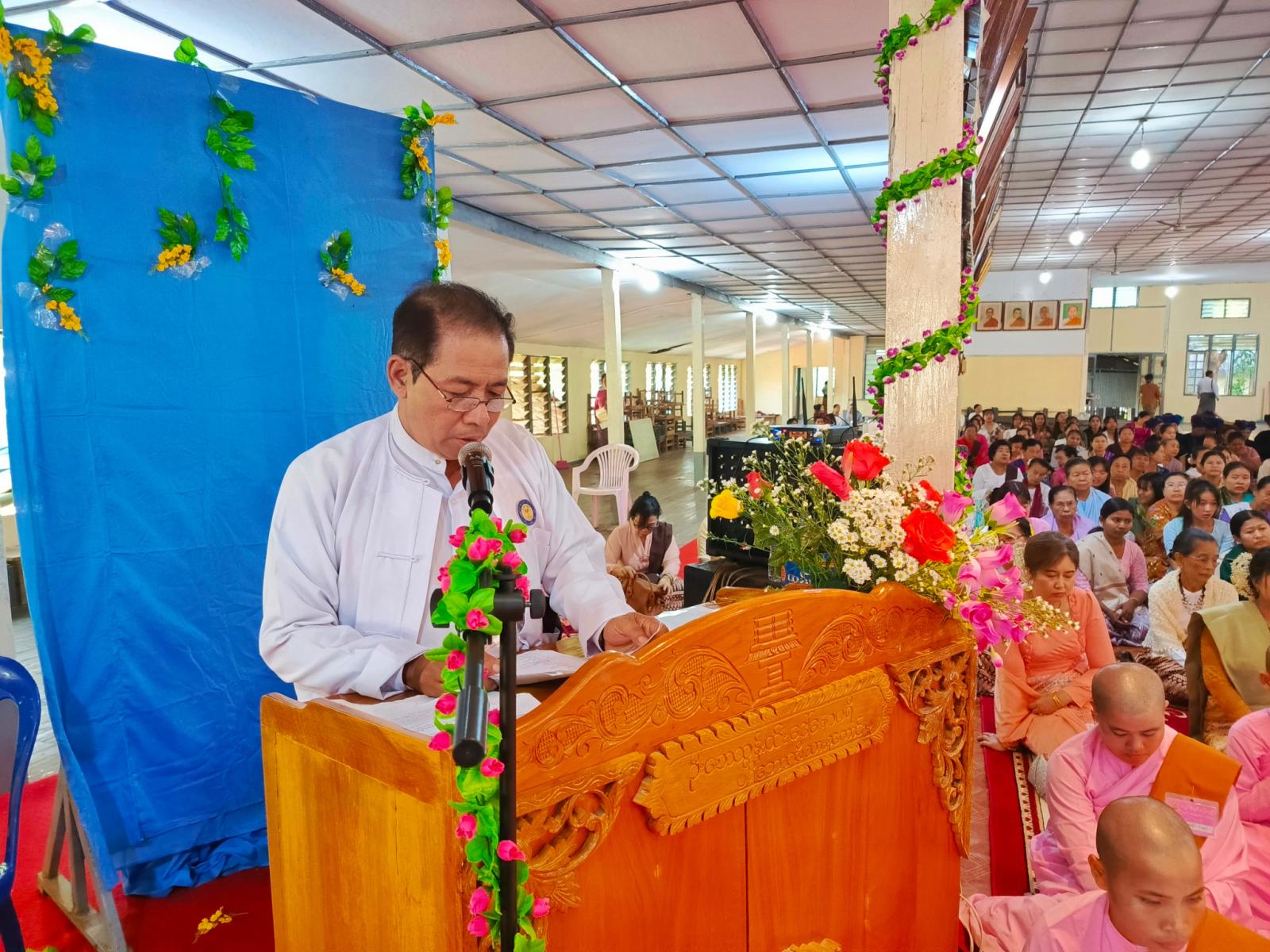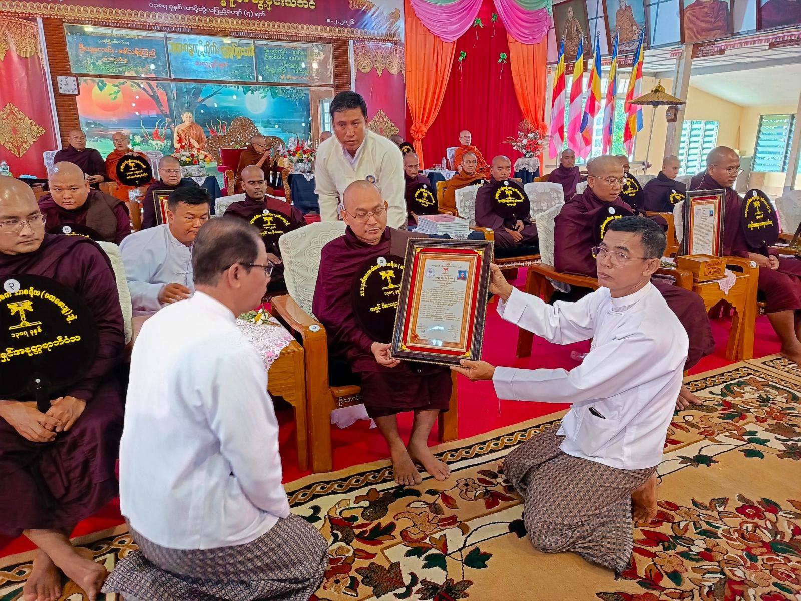 ယင်းနောက် ပရိယတ္တိသာသနဟိတအသင်းဥက္ကဋ္ဌ ဦးတင်မြင့်နှင့် အမှုဆောင်တို့က (၉၈)ကြိမ်မြောက် မဟာဓမ္မပူဇာဘွဲ့နှင်းသဘင်ကျင်းပခြင်းနှင့်စပ်လျဉ်း၍ ရှင်းလင်းပြောကြားကြ ပြီး အသင်းဥက္ကဋ္ဌနှင့် တာဝန်ရှိသူတို့က ပရိယတ္တိသာသနဟိတအသင်းနာယကဆရာတော် ကြီးများထံ လှူဖွယ်များ ဆက်ကပ်လှူဒါန်းကြသည်။